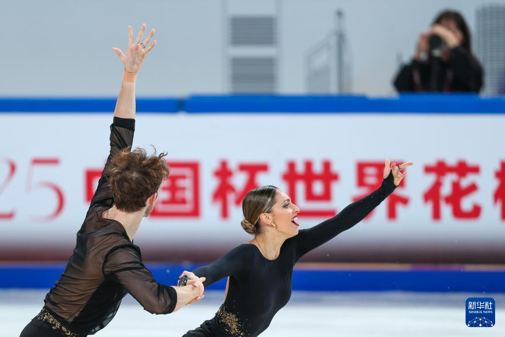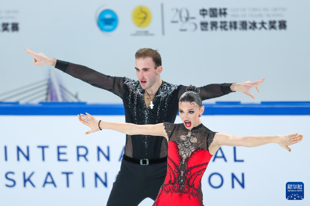 当日,2025年中国杯世界花样滑冰大奖赛双人滑短节目比赛在重庆华熙文化体育中心举行。
