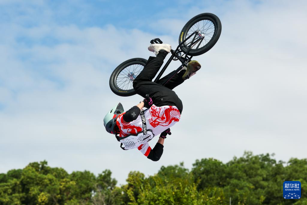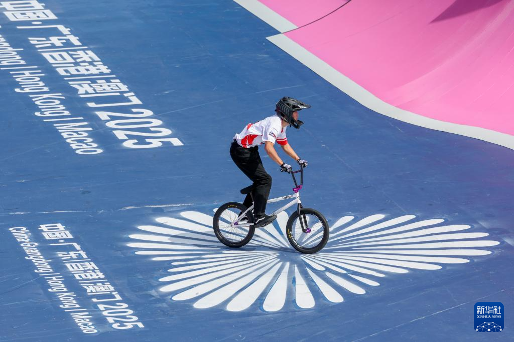 当日,第十五届全国运动会自由式小轮车男子公园赛决赛在深圳光明区虹桥公园举行。