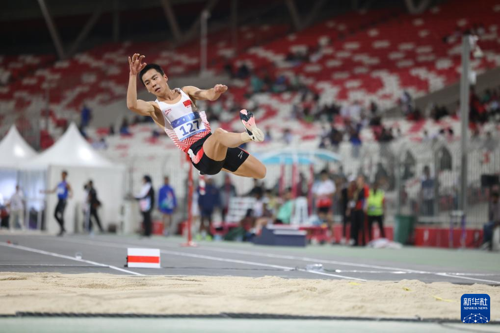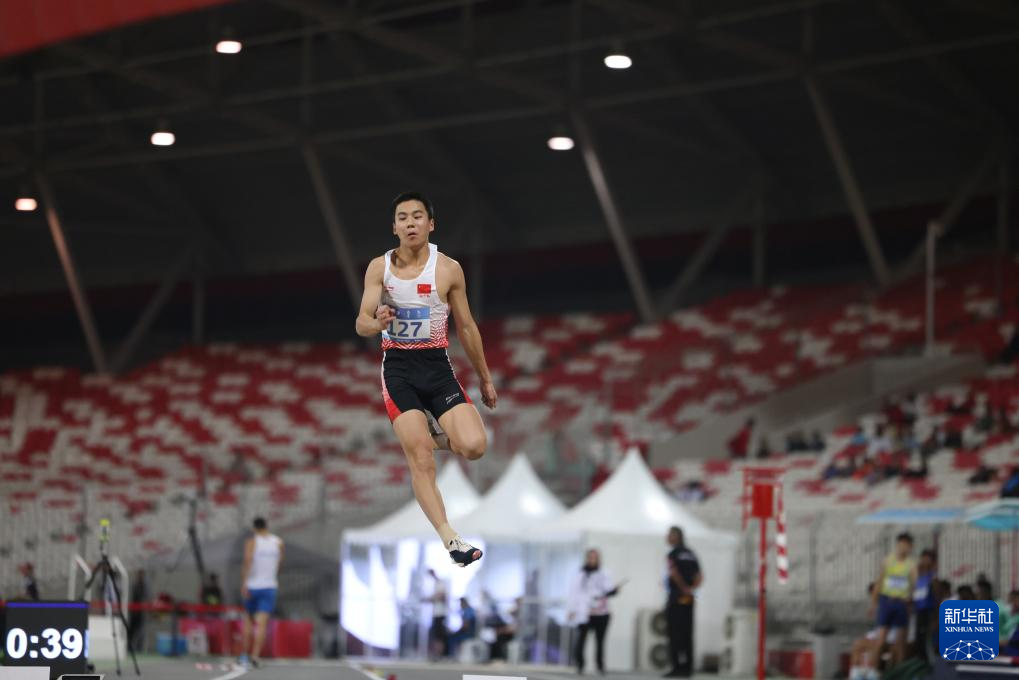 10月25日,中国选手袁磊在男子跳远比赛中。最终,他夺得冠军。