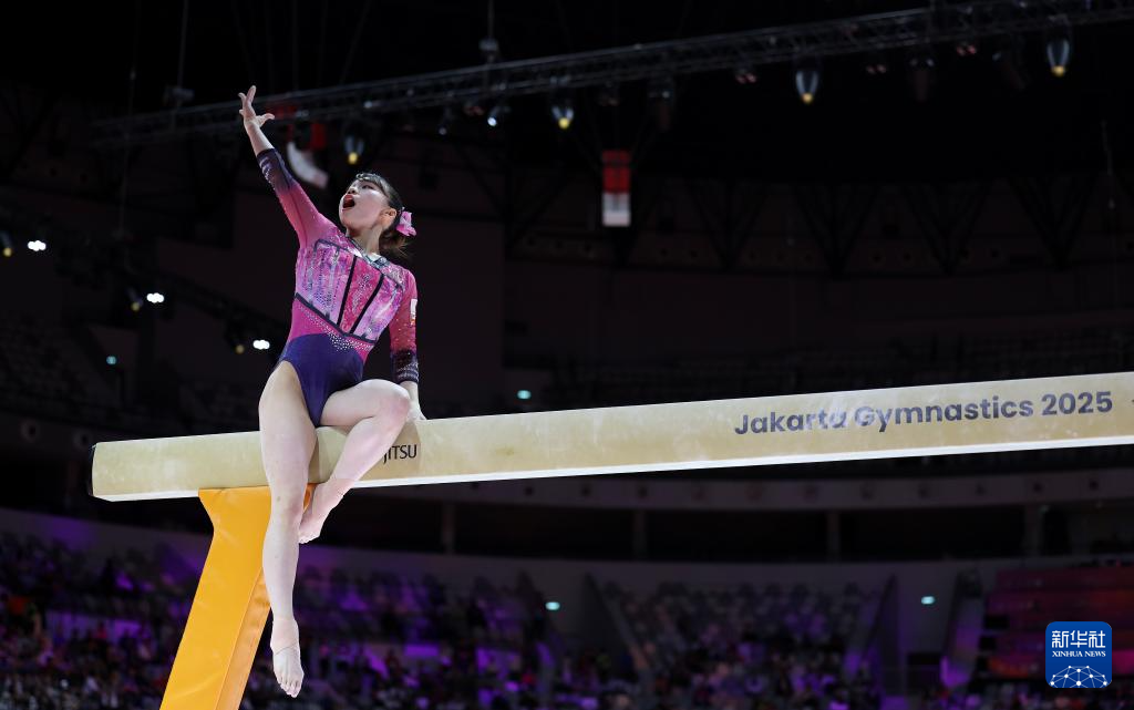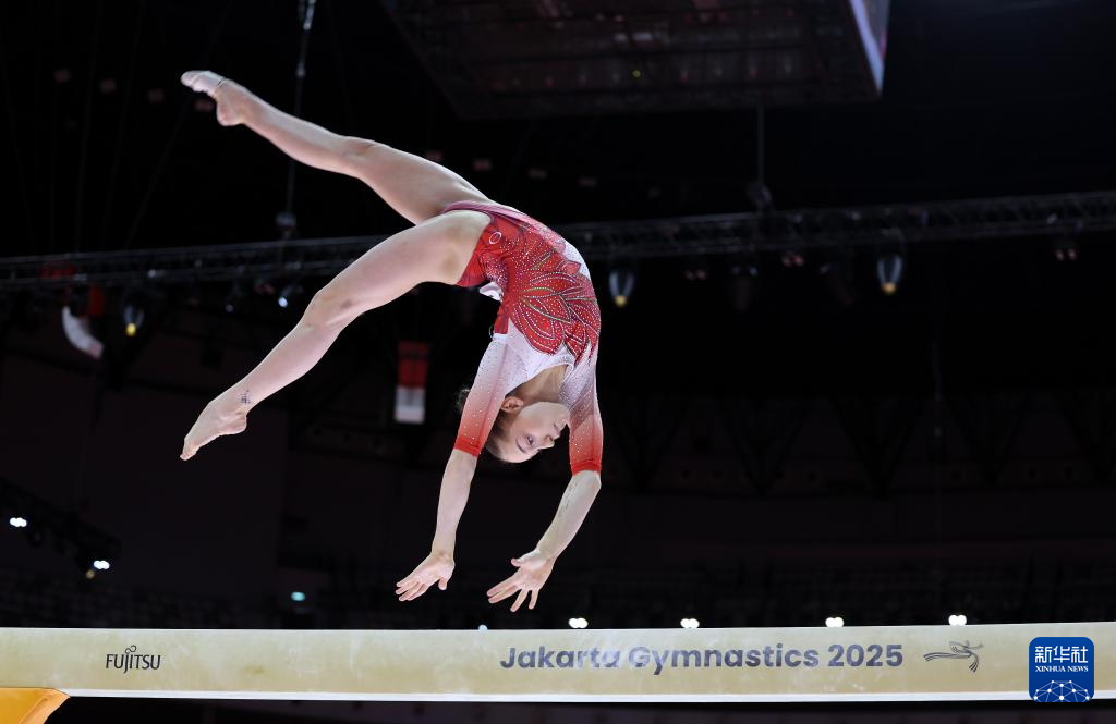 当日,2025年国际体操联合会(FIG)竞技体操世锦赛女子平衡木决赛在印度尼西亚雅加达举行。