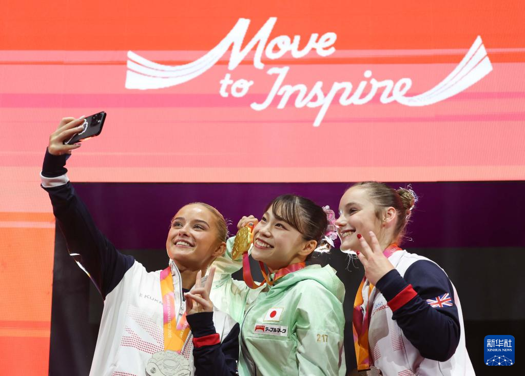 10月25日,冠军日本选手杉原爱子(中)、亚军英国选手埃文斯(左)和季军英国选手马丁在颁奖仪式上合影。