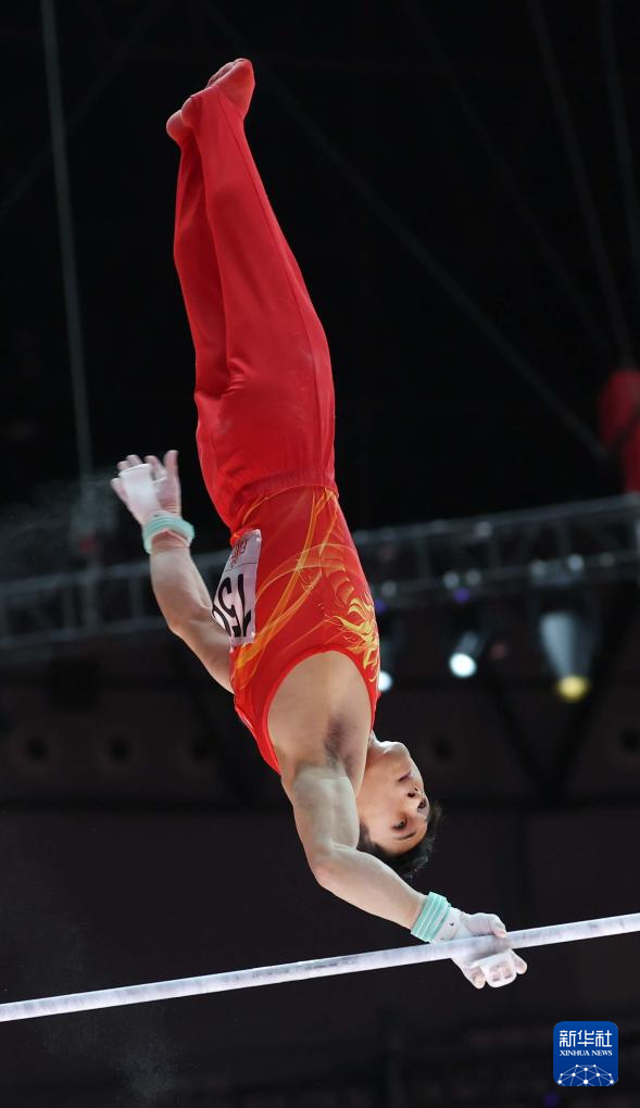 当日,2025年国际体操联合会(FIG)竞技体操世锦赛男子单杠决赛在印度尼西亚雅加达举行。
