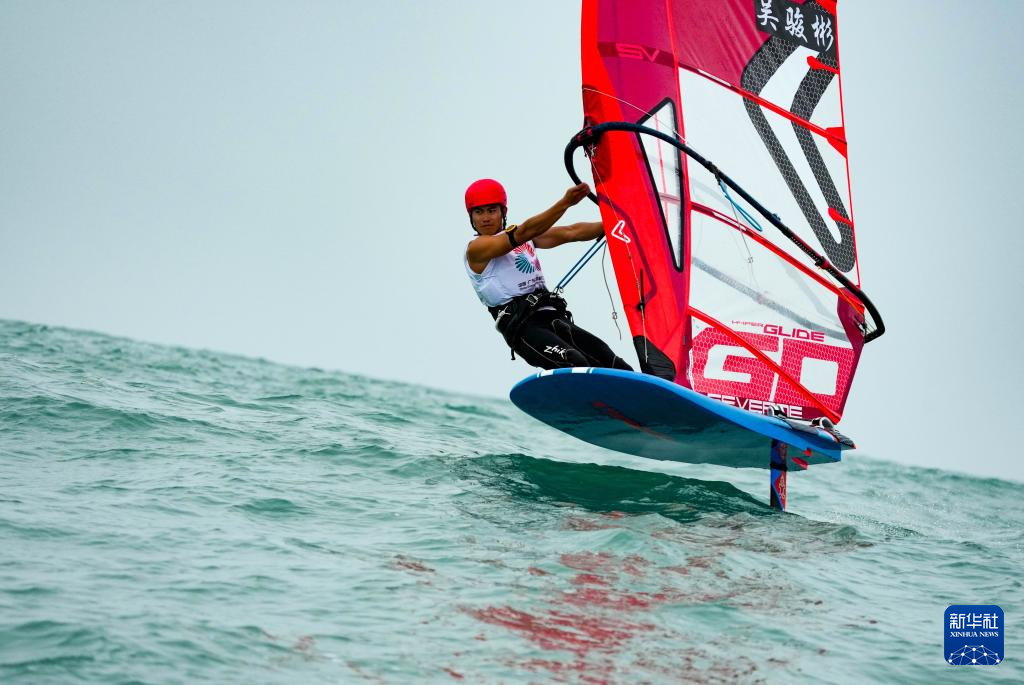 10月28日,参赛选手在女子水翼帆板级第二阶段比赛中。