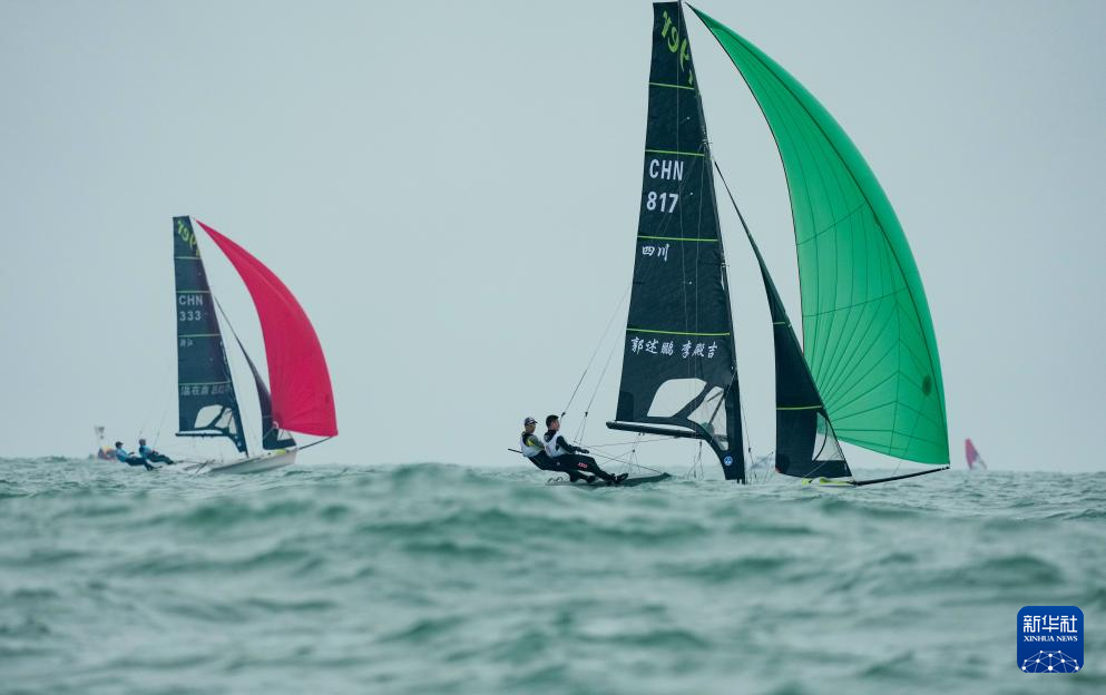 当日,第十五届全运会帆船项目第二阶段比赛继续在广东省汕尾市进行。
