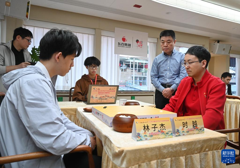10月28日,深圳龙华队选手时越(右)与福建刺桐棋院队选手林子杰在比赛中。