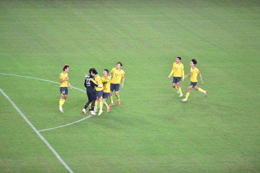 10月18日,泰州队球员在和南京队的点球大战获胜后庆祝。新华社发(刘臻睿 摄)