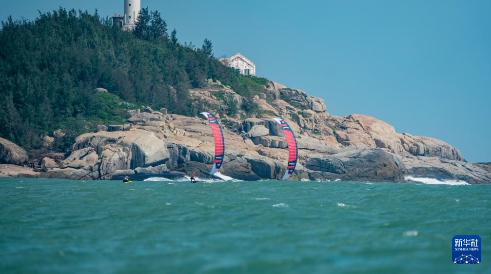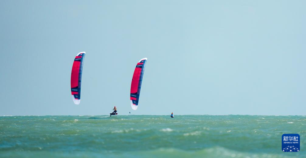 10月30日,上海队选手李婉(左)和广东队选手王思在女子水翼风筝板级比赛中。最终,李婉获得冠军,王思获得亚军。