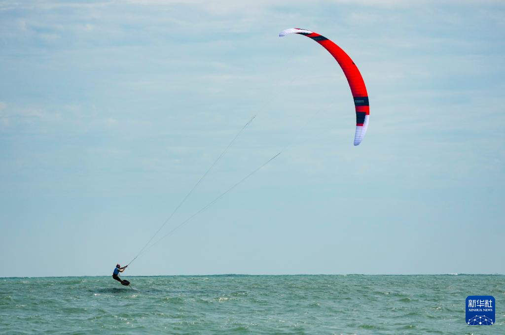 10月30日,山东队选手张浩然在男子水翼风筝板级比赛中。最终,他获得亚军。