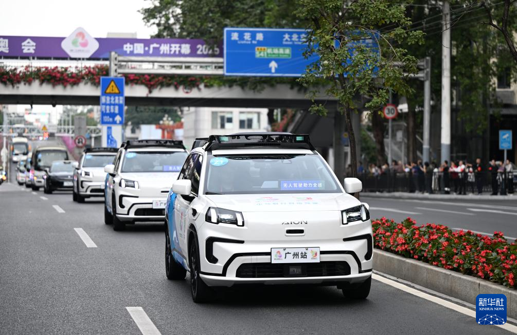 11月2日,无人驾驶汽车在火炬传递活动中。