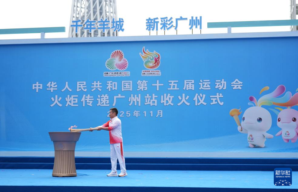 这是11月2日拍摄的第十五届全运会火炬传递广州站收火仪式现场。
