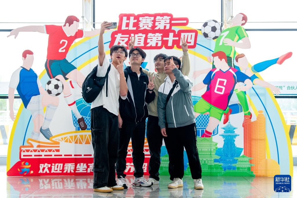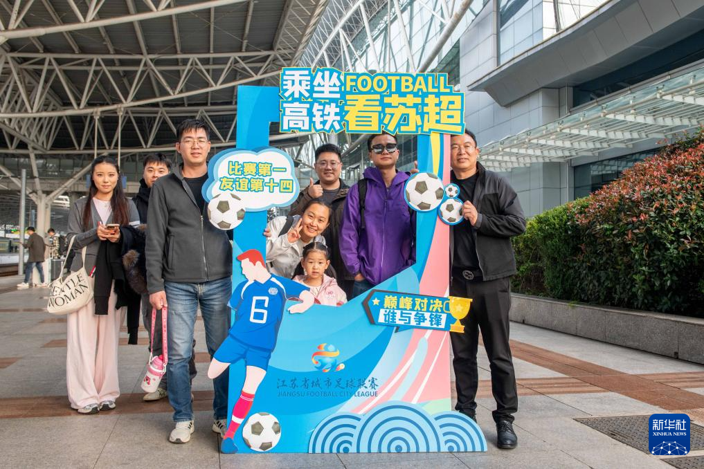 11月1日,赴南京观看苏超决赛的球迷在江苏泰州站合影。
