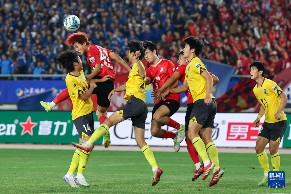 11月1日,南通队球员金成民(左二)在比赛中争顶。