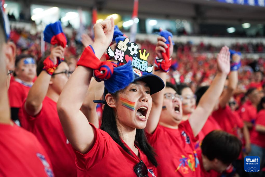 11月1日,南通队球迷在比赛中为球队加油助威。