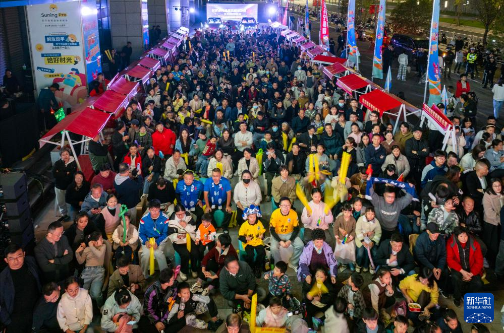 11月1日,在南京金鹰国际购物中心门前广场上,市民在观看“苏超”决赛转播。