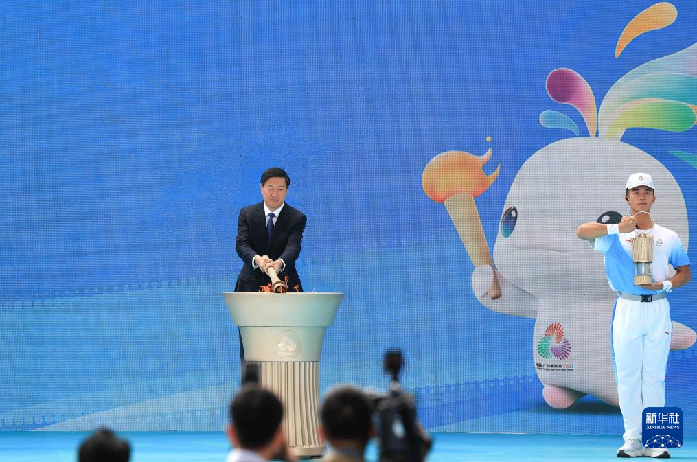 11月2日,国家体育总局局长高志丹在启动仪式上引燃火炬。