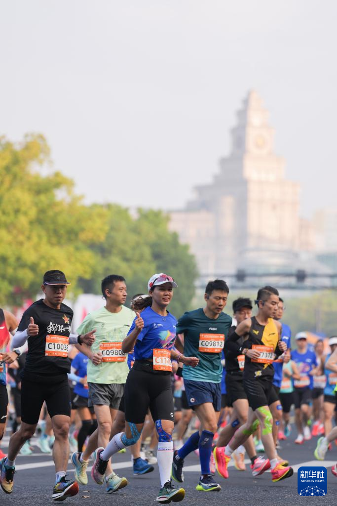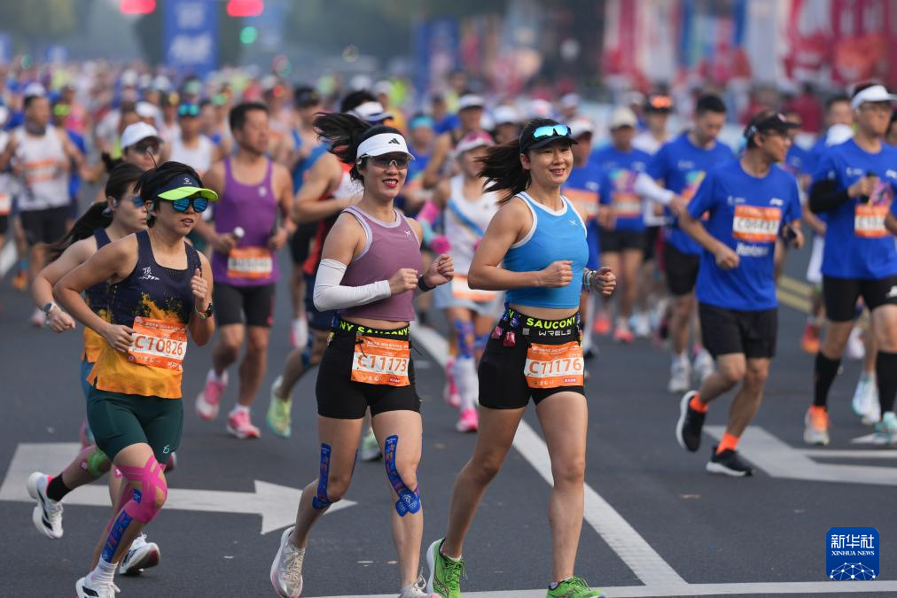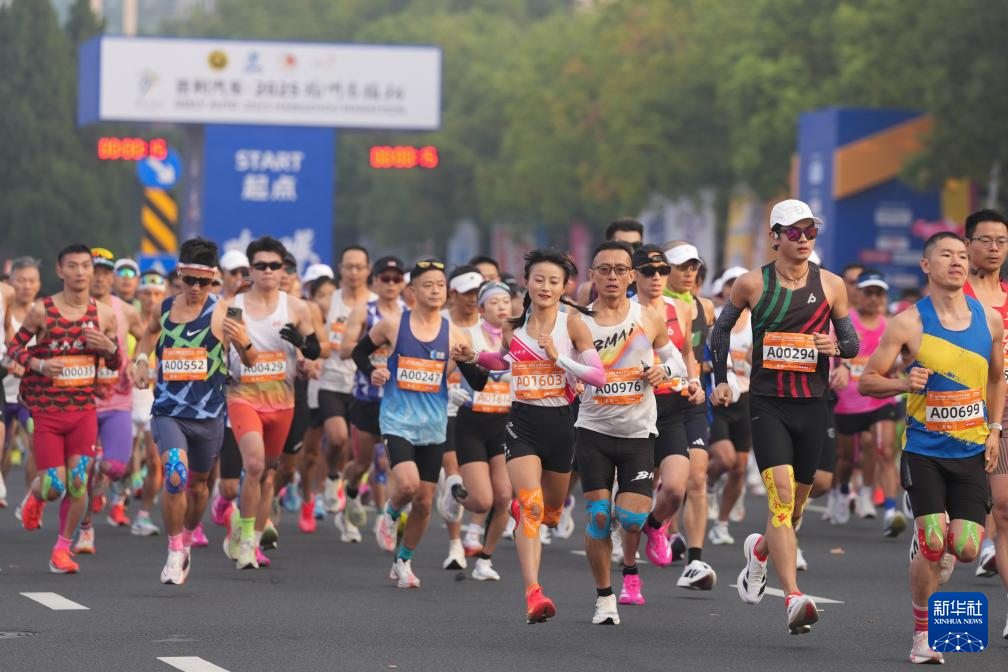 当日,2025杭州马拉松赛在黄龙体育中心鸣枪开跑。