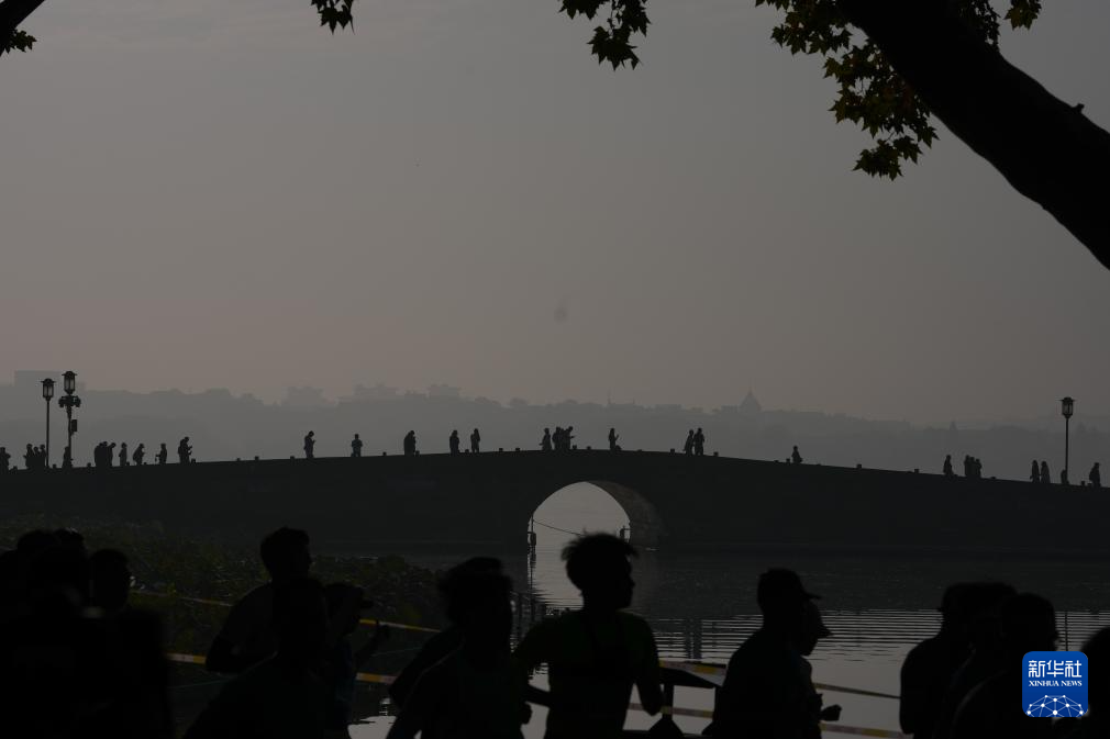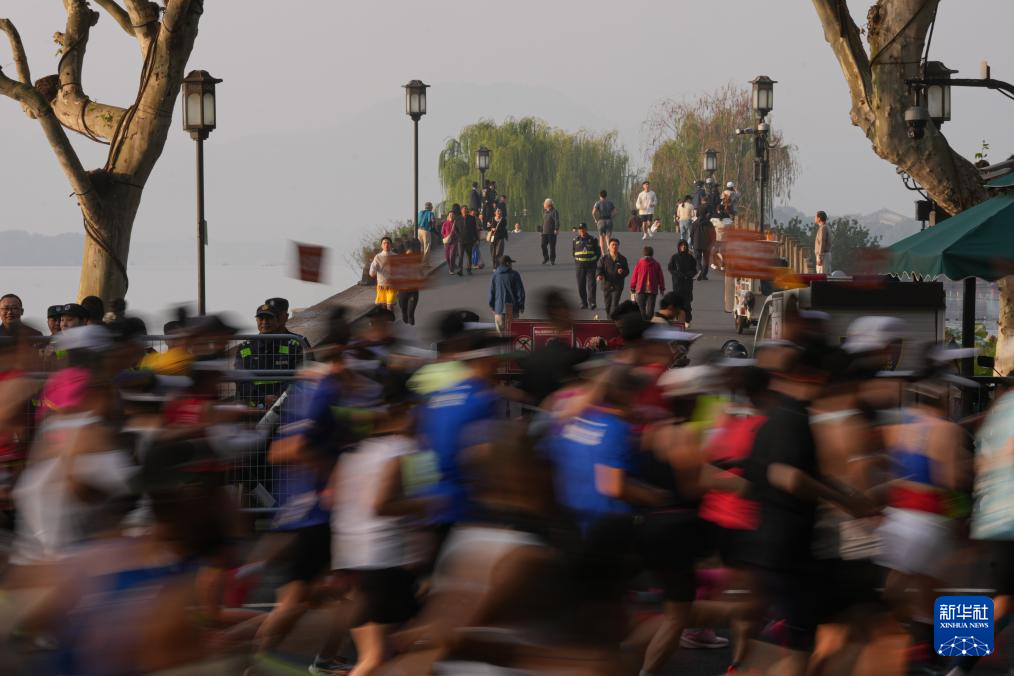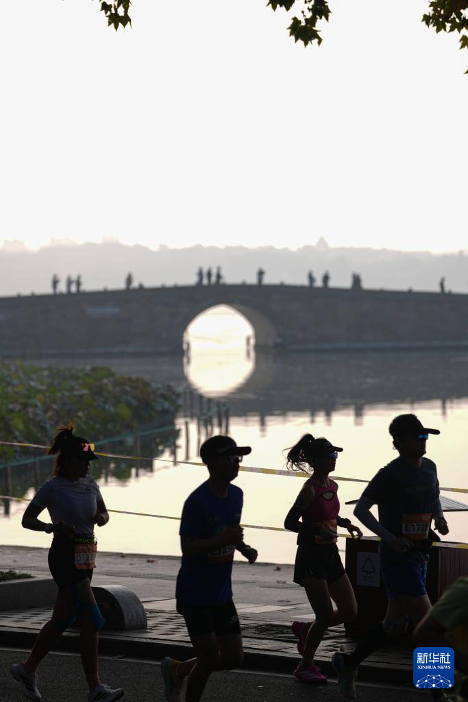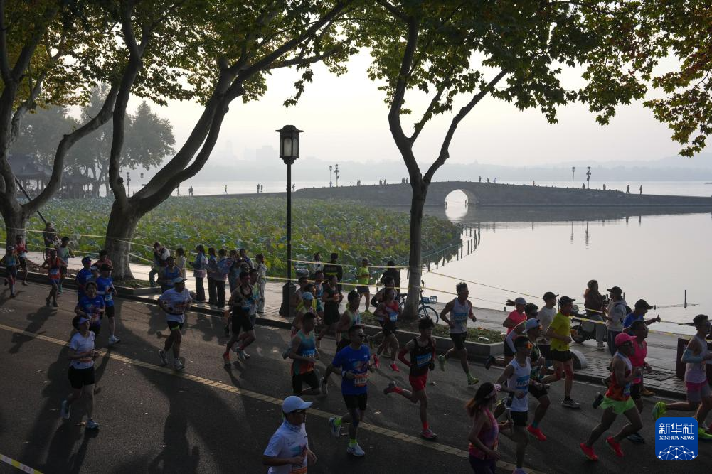 11月2日,参赛选手在比赛中经过西湖景区断桥附近。