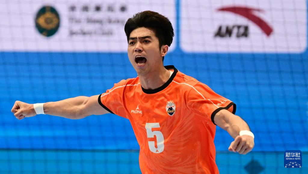 11月2日,山东队球员刘天驰在比赛中庆祝进球。