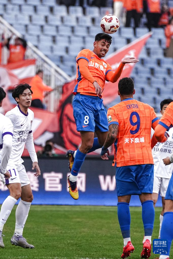 11月1日,山东泰山队球员马德鲁加(上)在比赛中争顶。