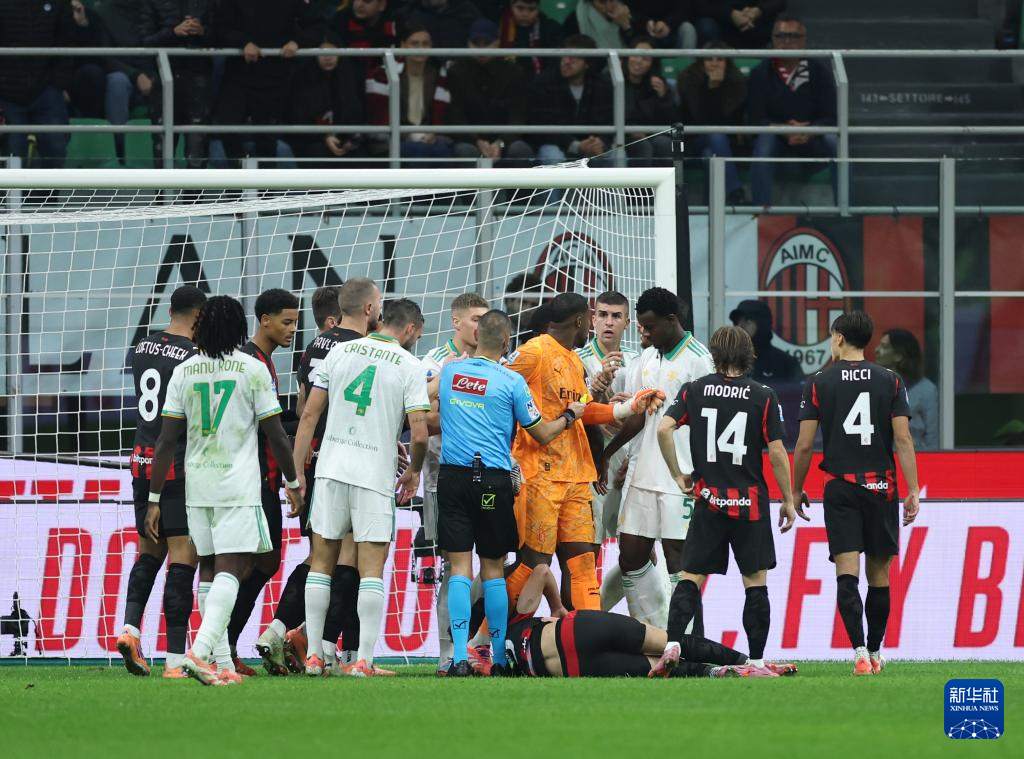 11月2日,AC米兰队球员帕夫洛维奇(左一)庆祝进球。
