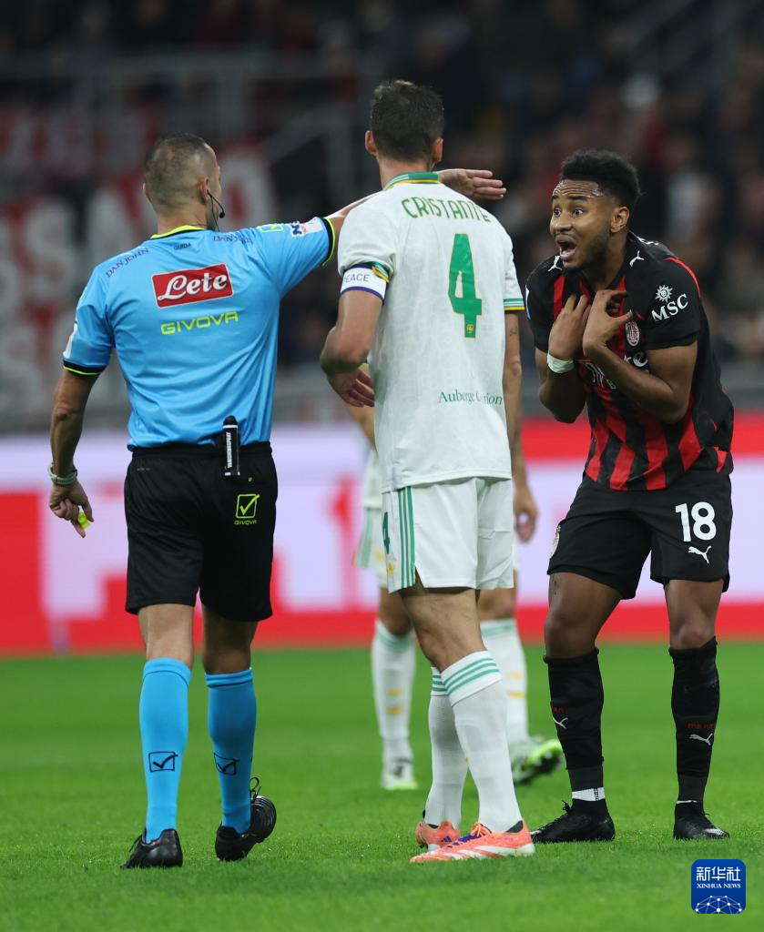 11月2日,AC米兰队球员恩昆库(右)在比赛中向裁判抗议。