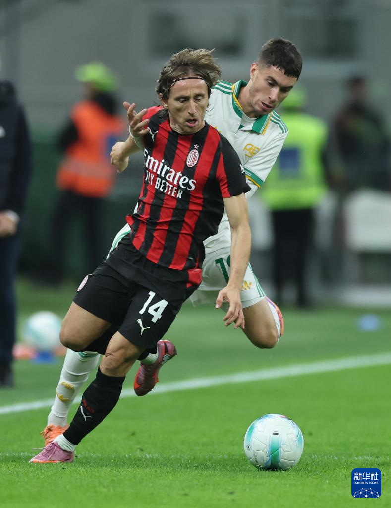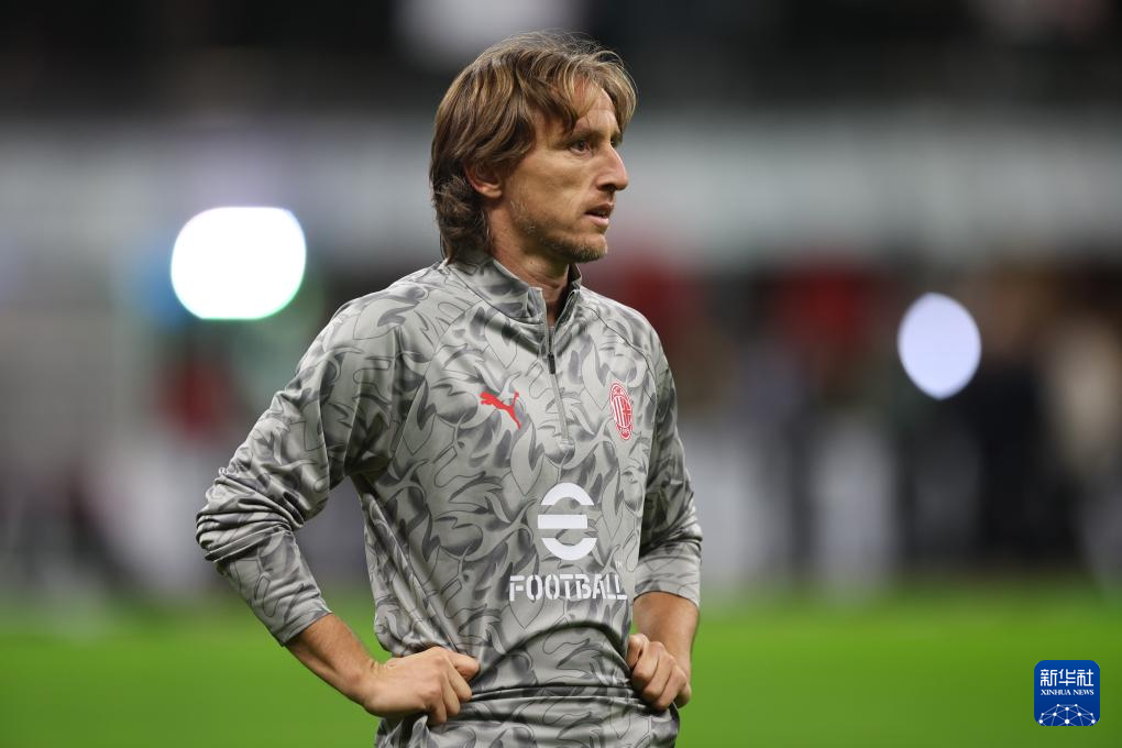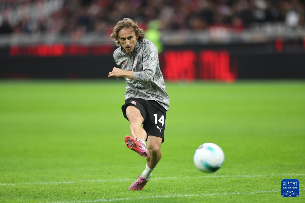 11月2日,AC米兰队球员莫德里奇在赛前训练中。