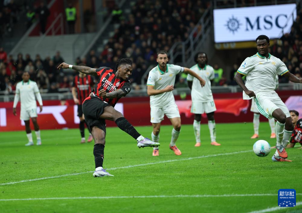 11月2日,AC米兰队球员莱奥(前)在比赛中射门。