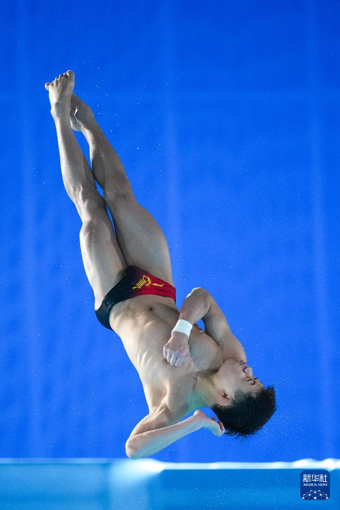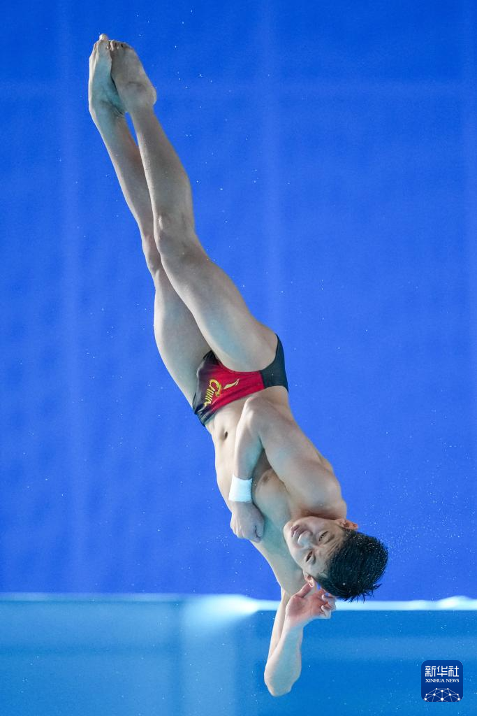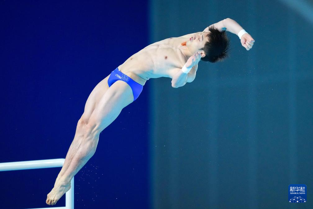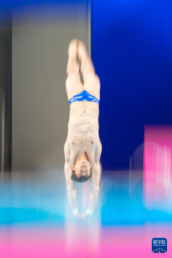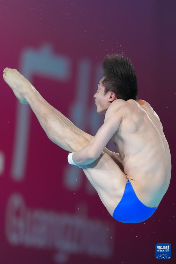 11月3日,广东队选手朱子锋在男子10米跳台比赛中。