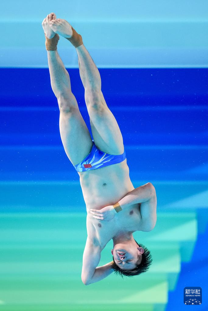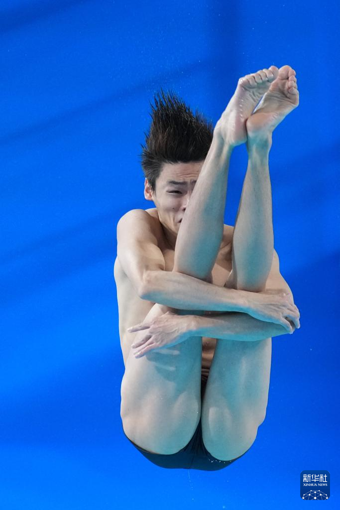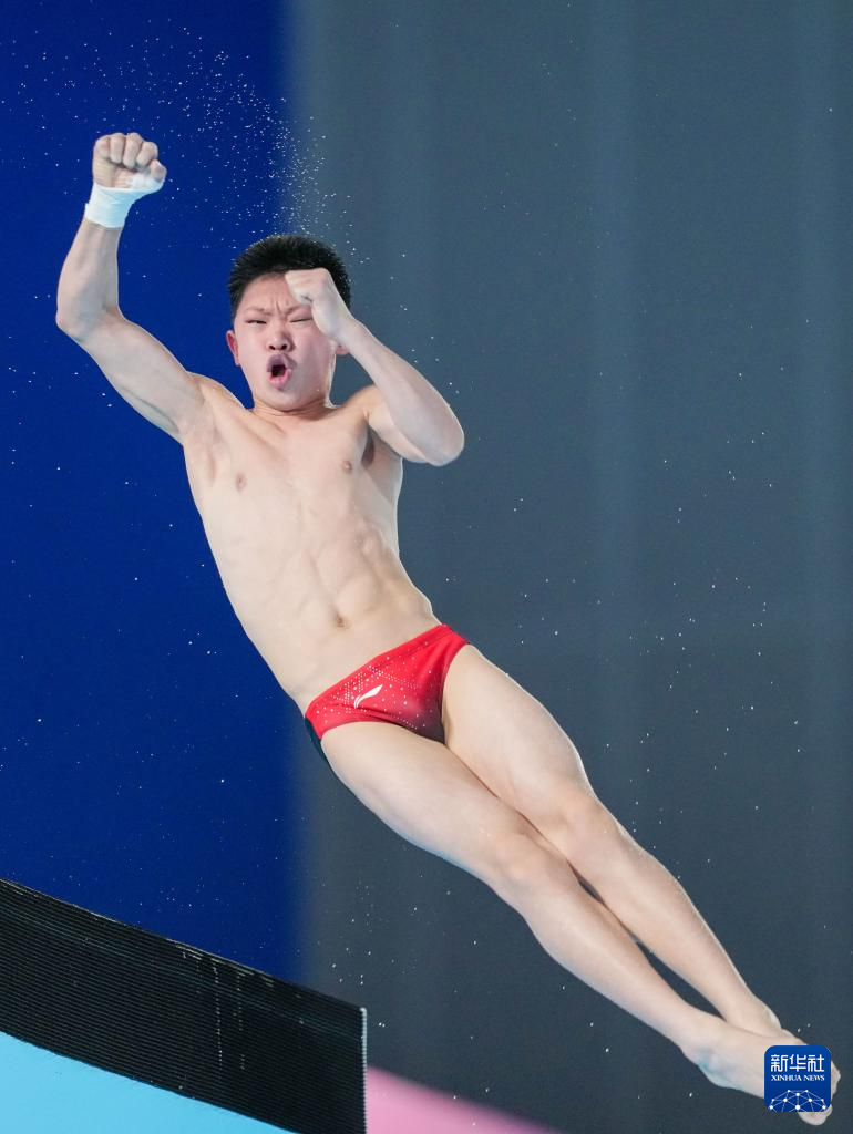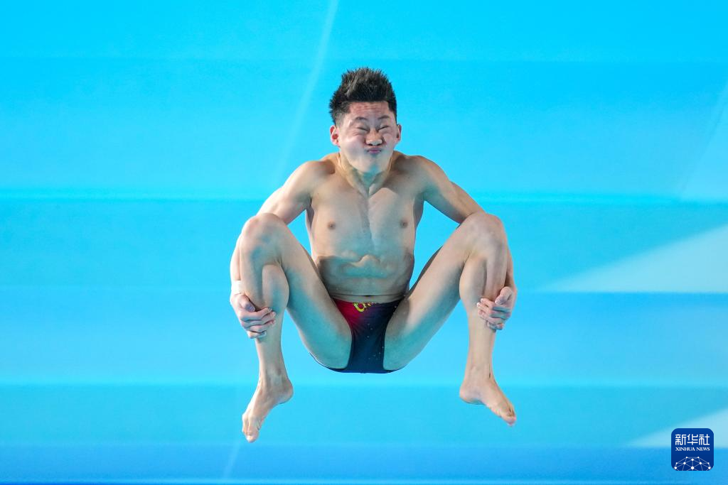 11月3日,广东队选手朱子锋在男子10米跳台比赛中。