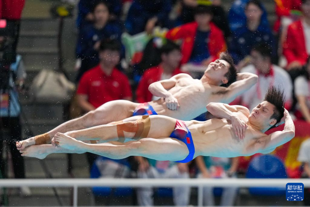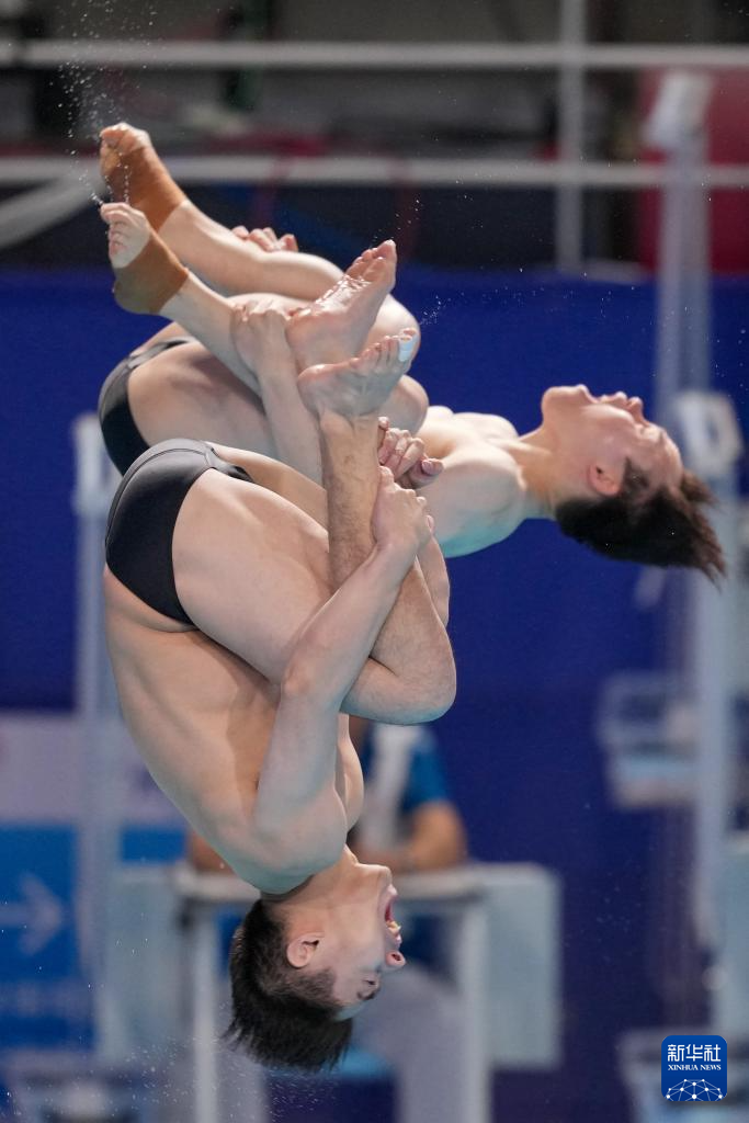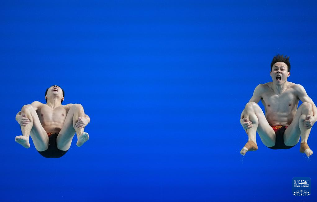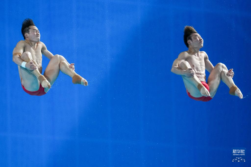 11月3日,湖北队组合王宗源/郑九源在男子双人3米跳板比赛中。