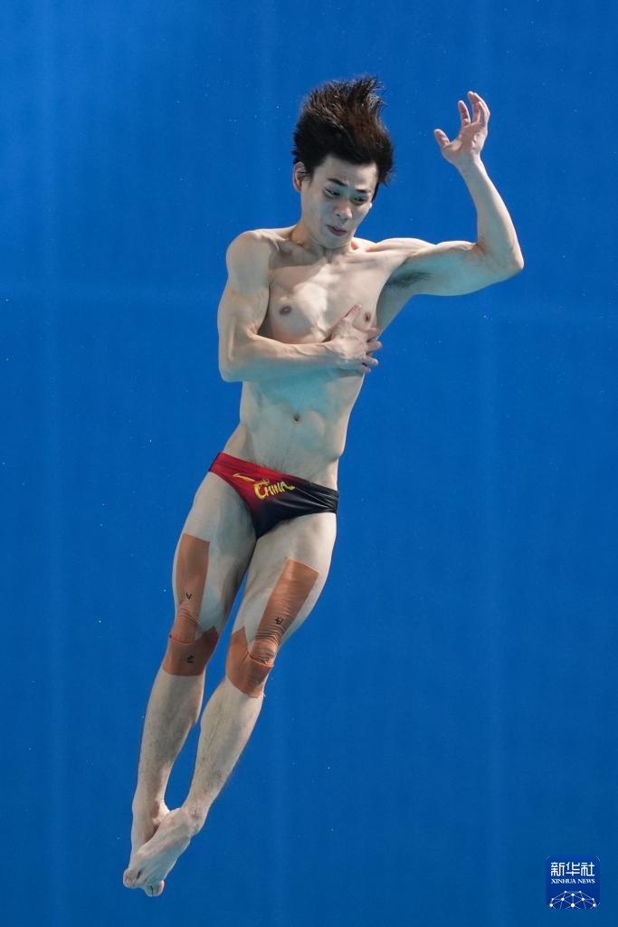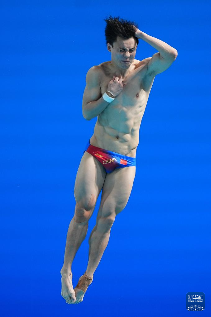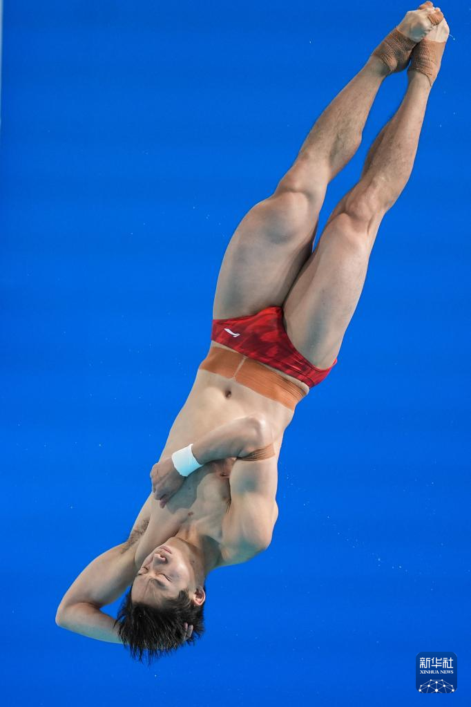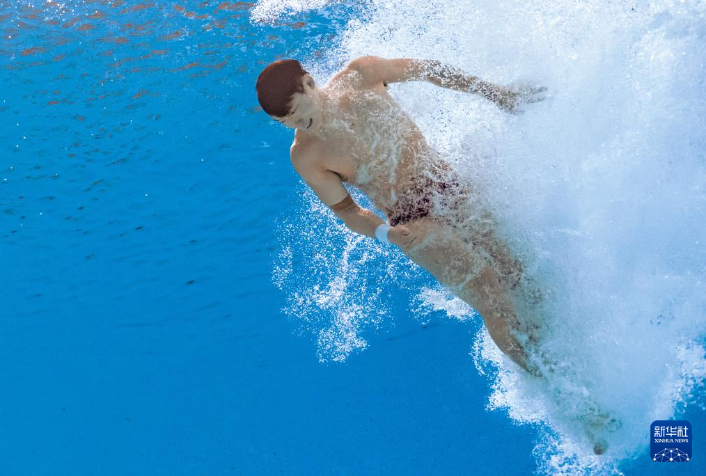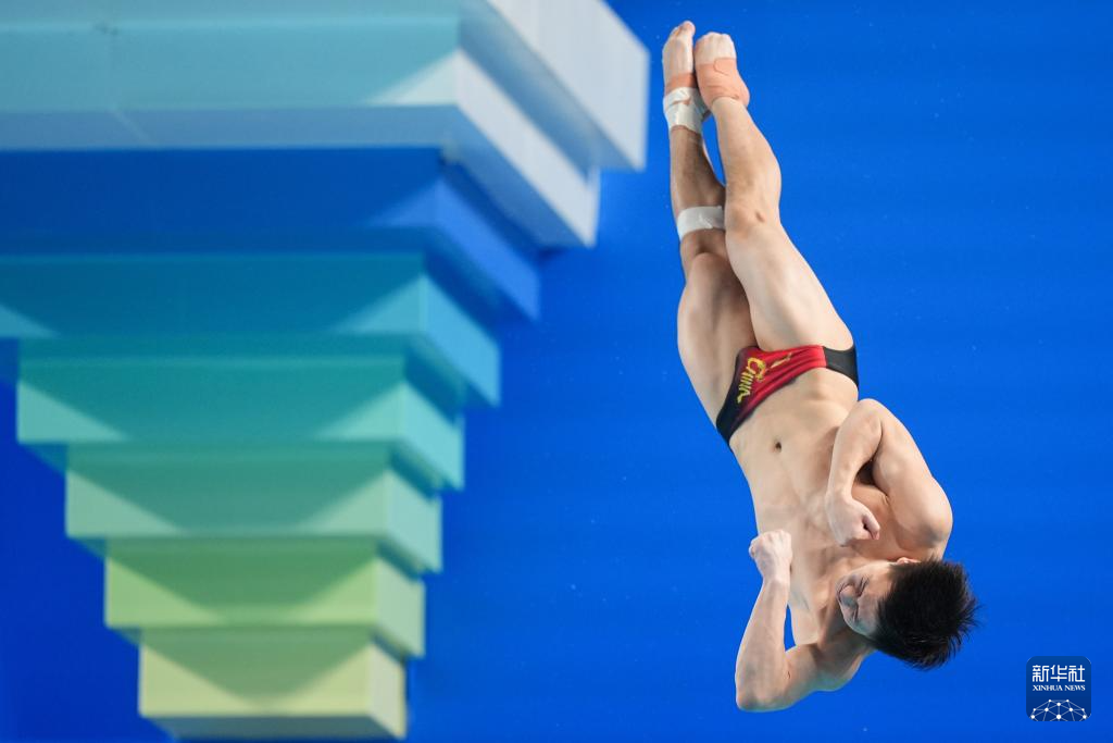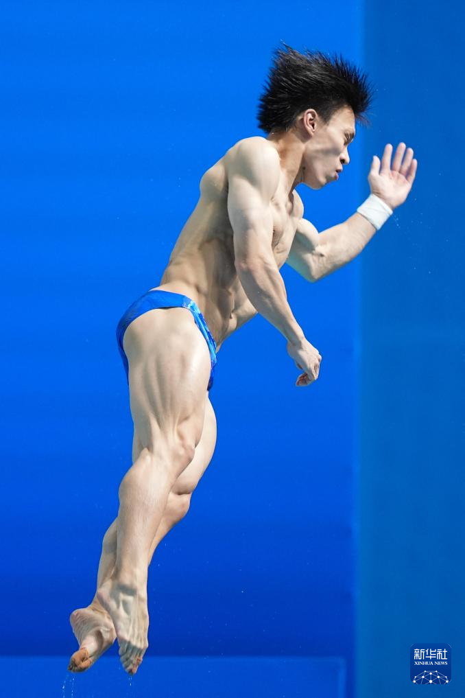11月3日,湖北队选手郑九源在男子三米板比赛中。