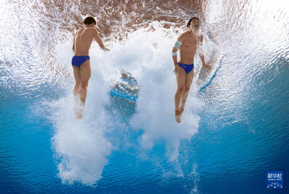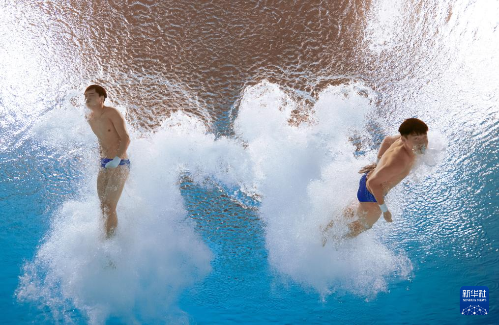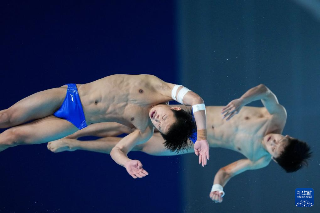 11月3日,湖北队组合程子龙/华文豪在男子双人10米跳台比赛中。