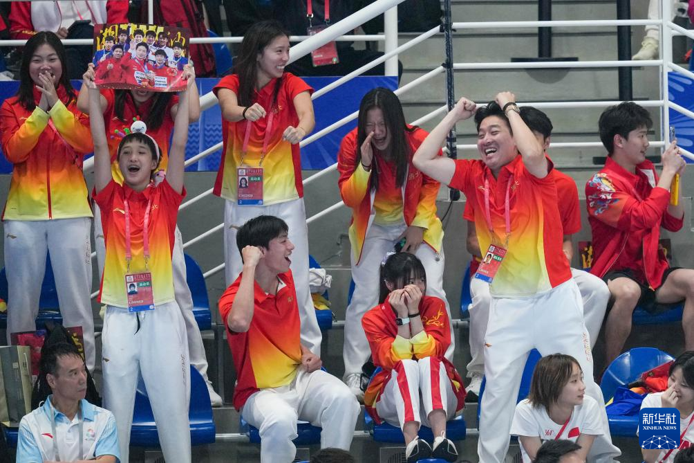 11月3日,湖北队在男子三米板比赛中为队友加油。