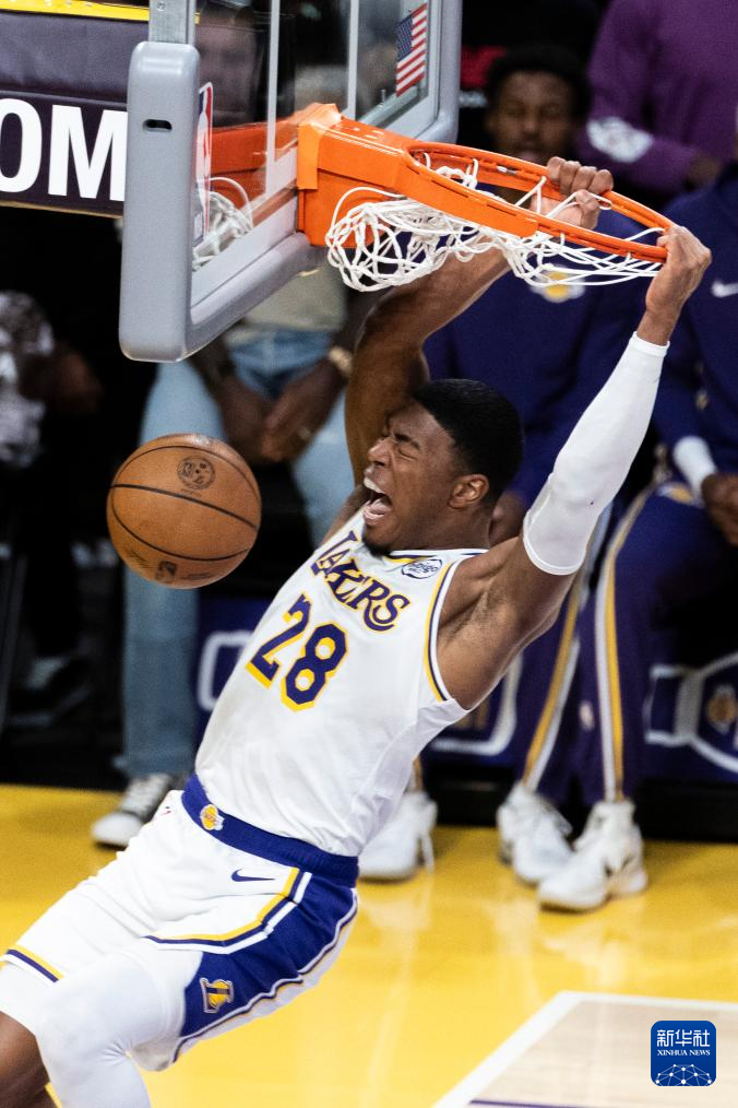 11月2日,湖人队球员八村塁在比赛中扣篮。