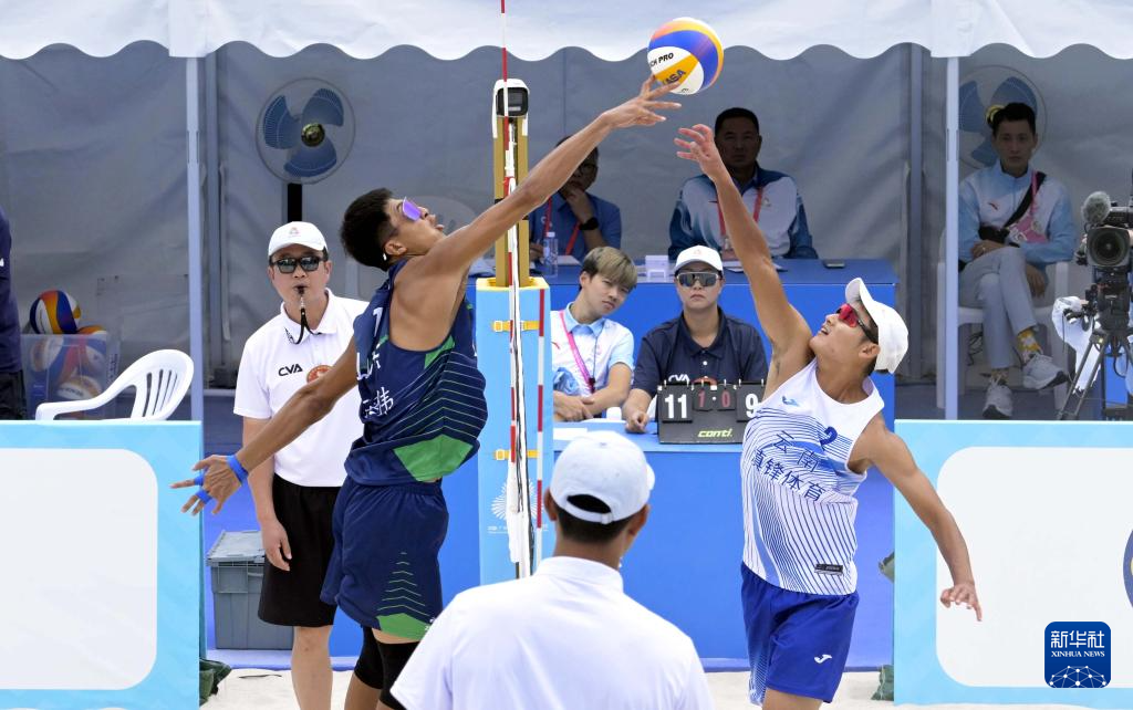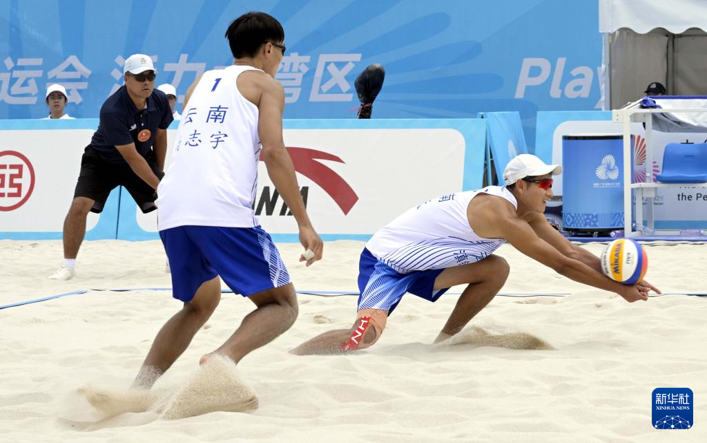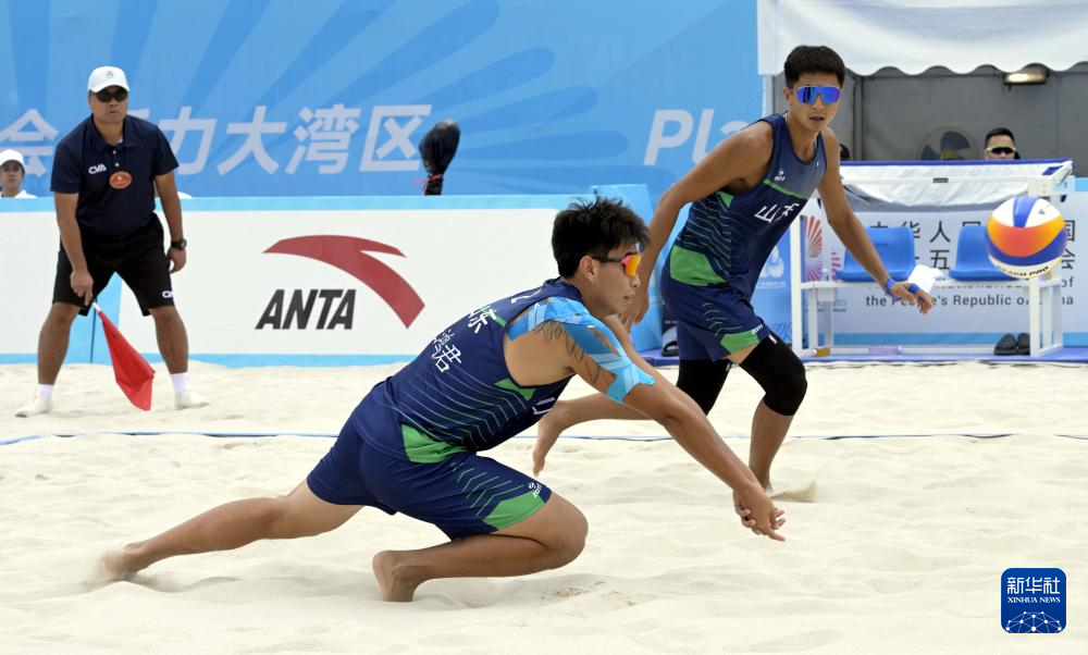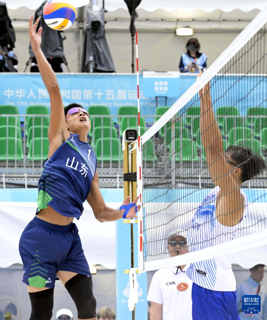 当日,在香港举行的第十五届全国运动会沙滩排球男子小组赛B组比赛中,山东队组合王延伟/杜鸿君2比0战胜云南队组合马志宇/陈天。