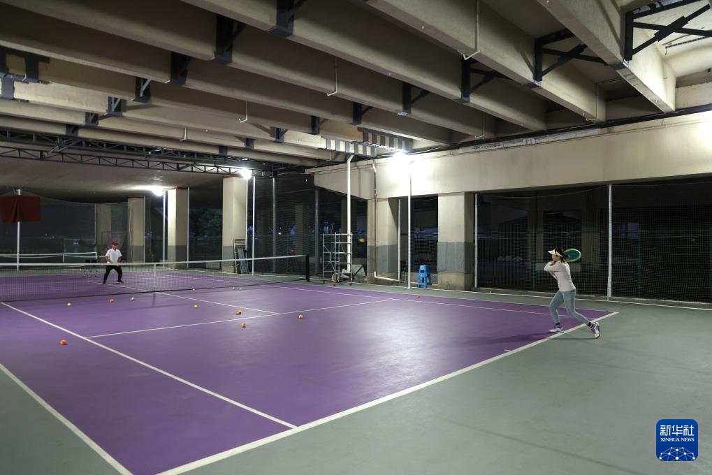 11月3日,市民在位于广州市二沙岛的广州大桥桥底网球场打球。