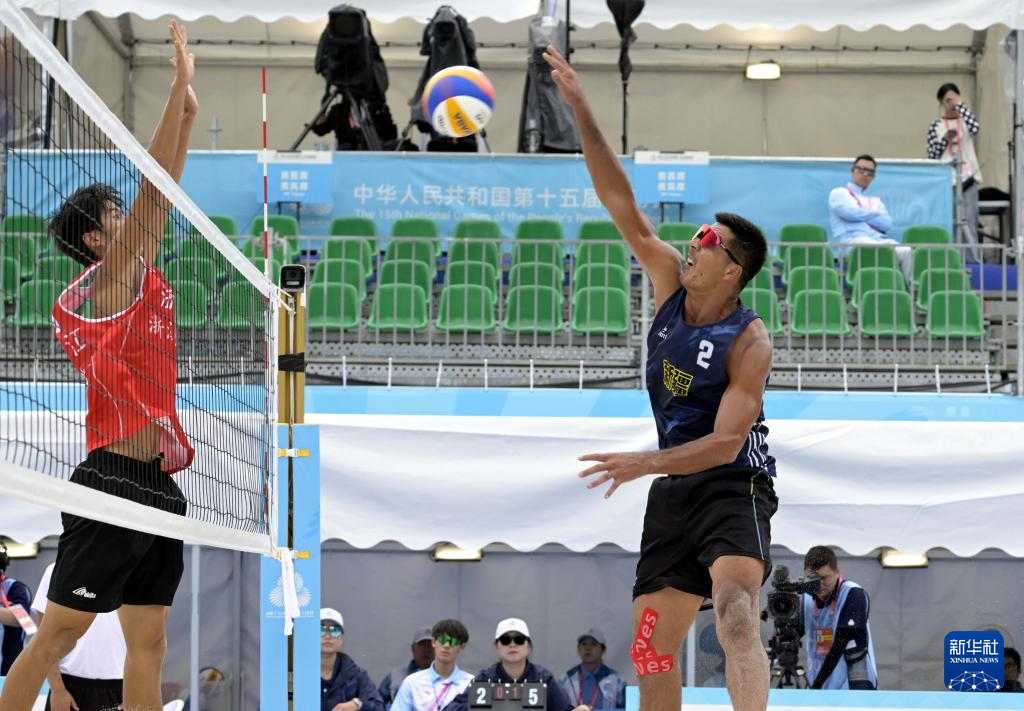 当日,在香港举行的第十五届全国运动会沙滩排球男子小组赛C组比赛中,新疆队组合哈力克江/萨拉木2比0战胜浙江队组合马浩东/洪伟强。