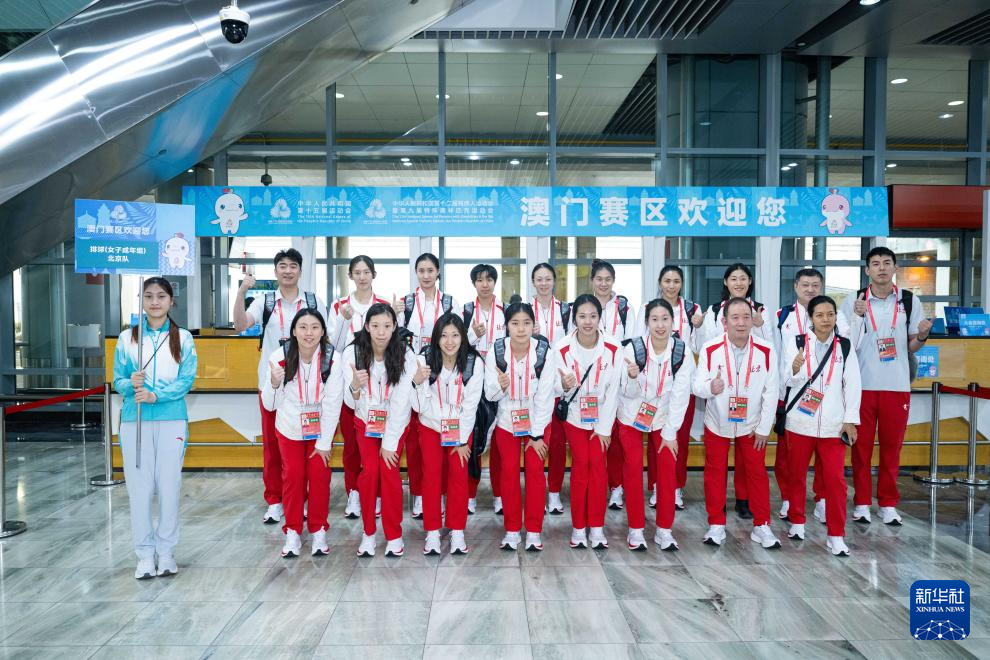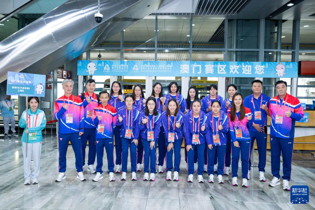 当日,第十五届全国运动会女子排球成年组参赛队伍陆续抵达澳门。女排成年组比赛将于7日开赛。