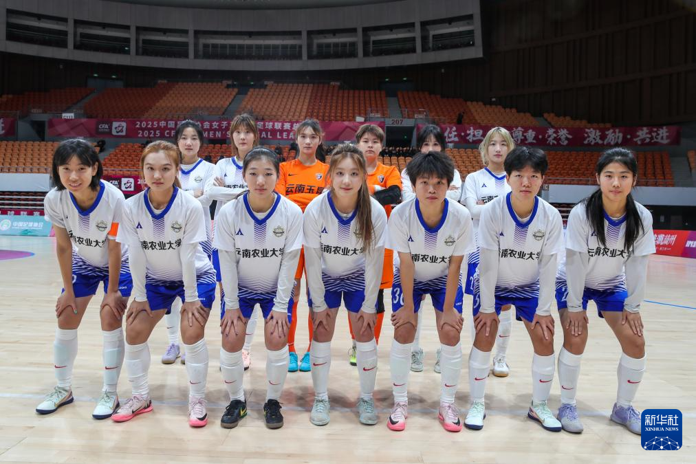11月5日,云南玉昆农大女足队球员在与首都体育学院队的比赛开始前合影。