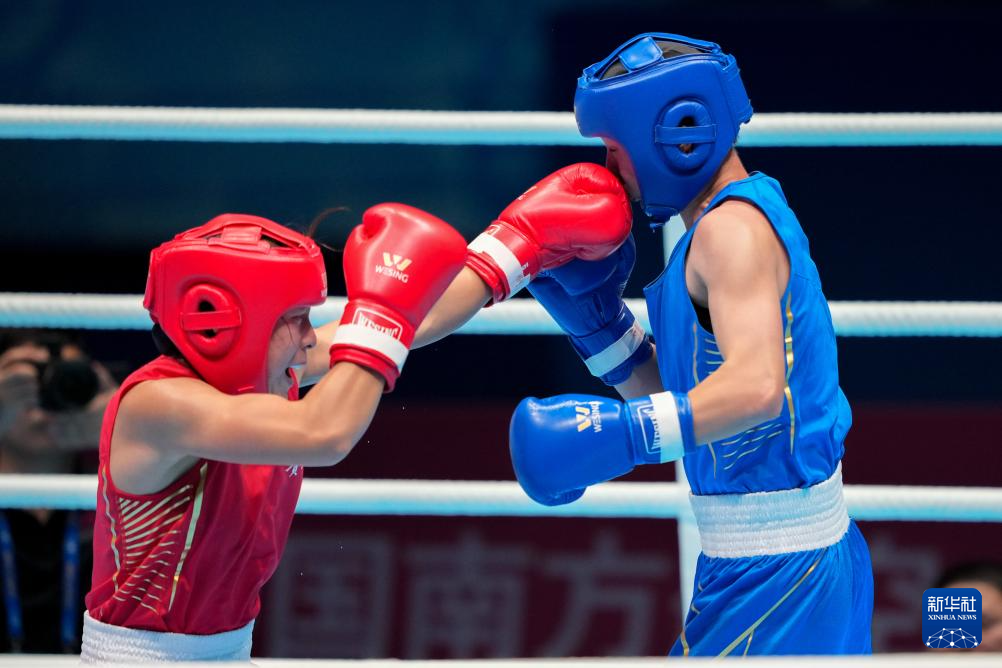 当日,在广东深圳举行的第十五届全国运动会拳击女子57公斤级四分之一决赛中,浙江队选手葛雅琪战胜贵州队选手胡宗婧,晋级下一轮。