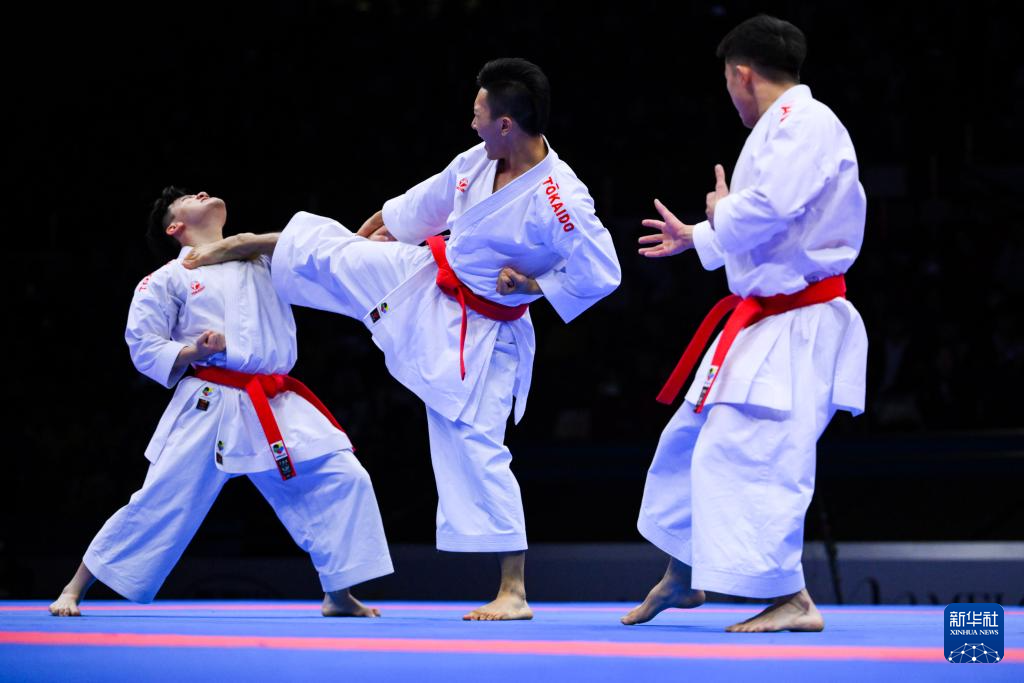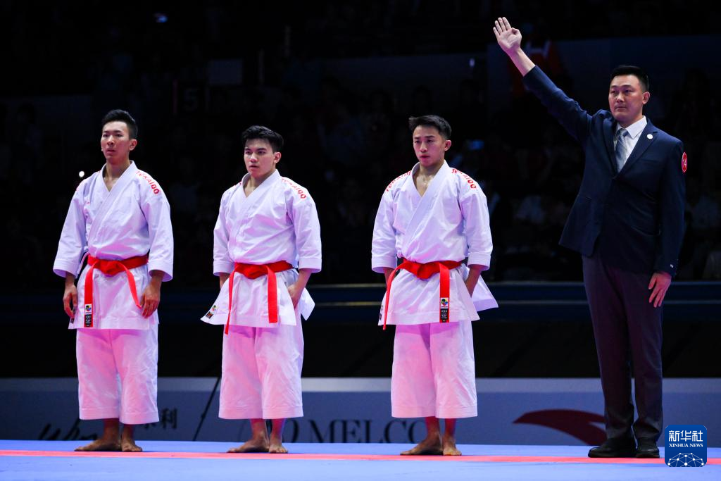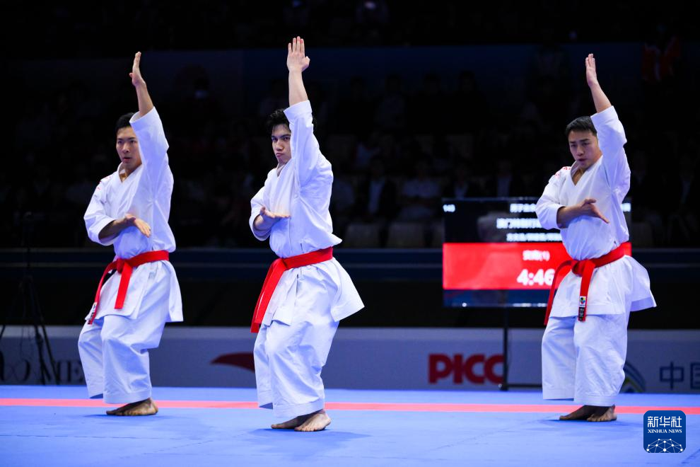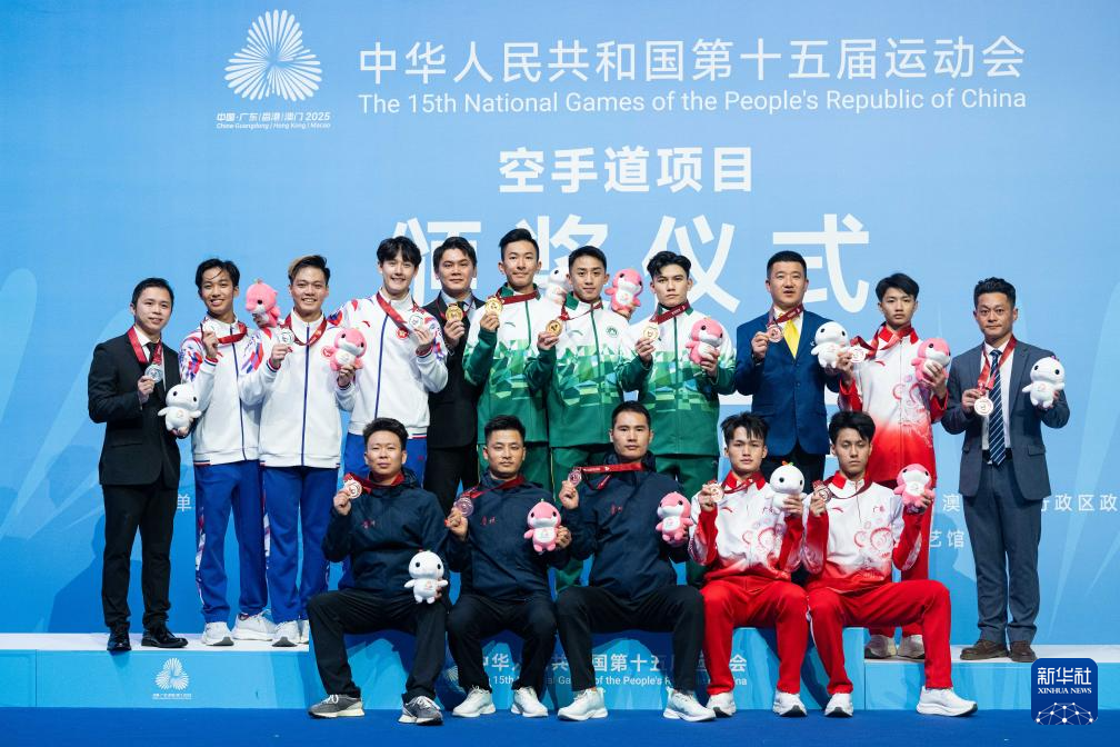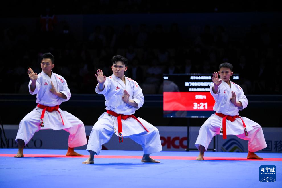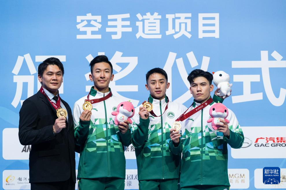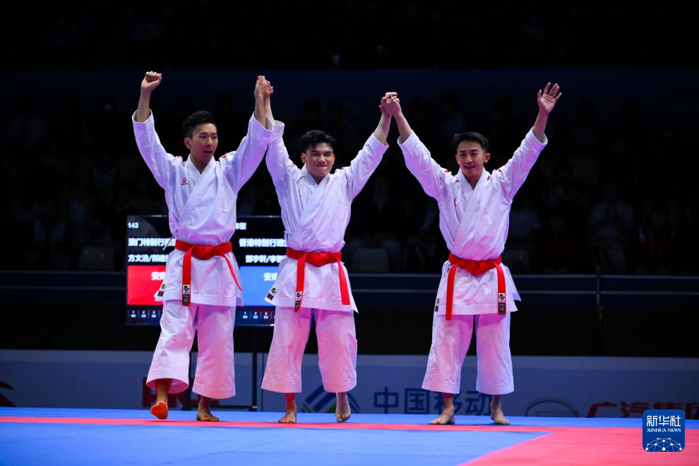 当日,在澳门举行的第十五届全国运动会空手道男子业余组团体型决赛中,澳门队战胜香港队,夺得冠军。