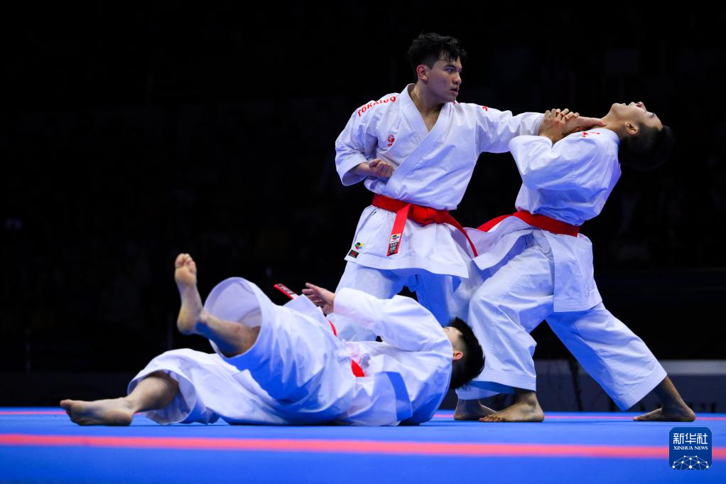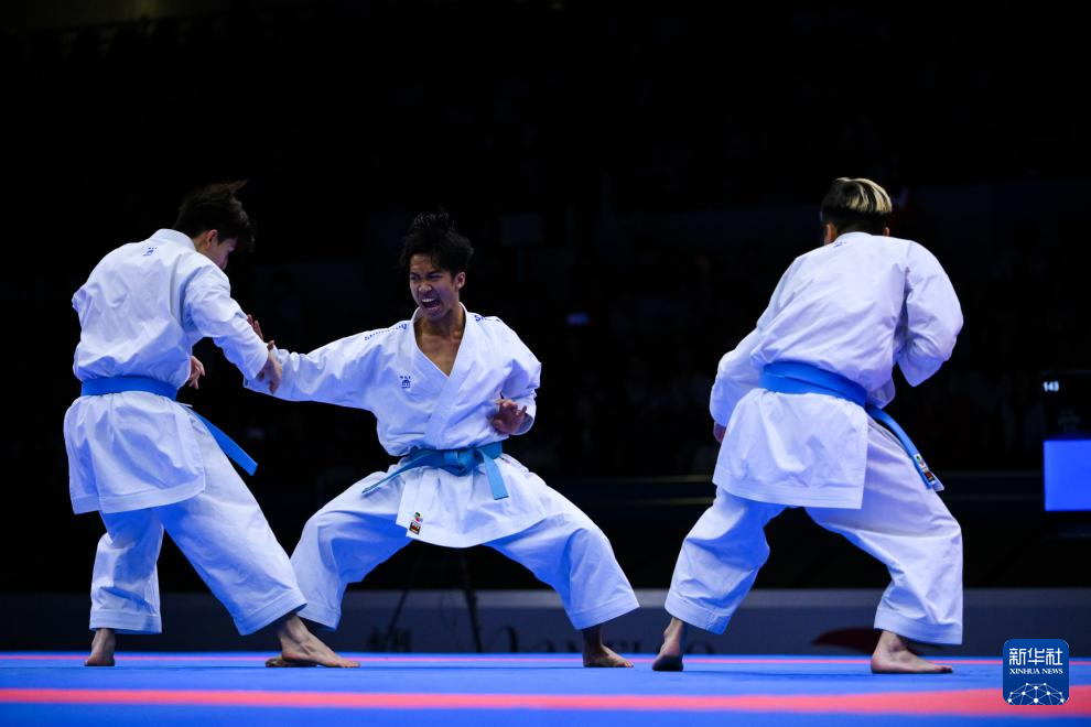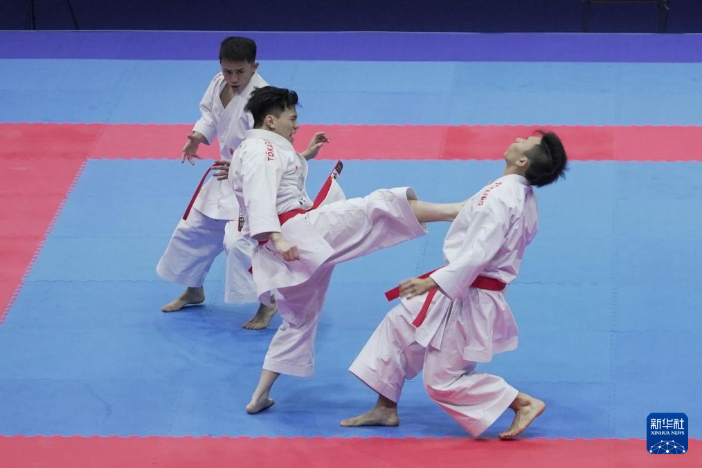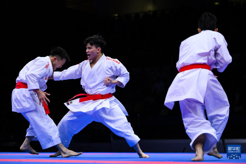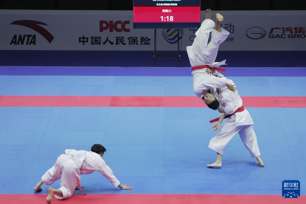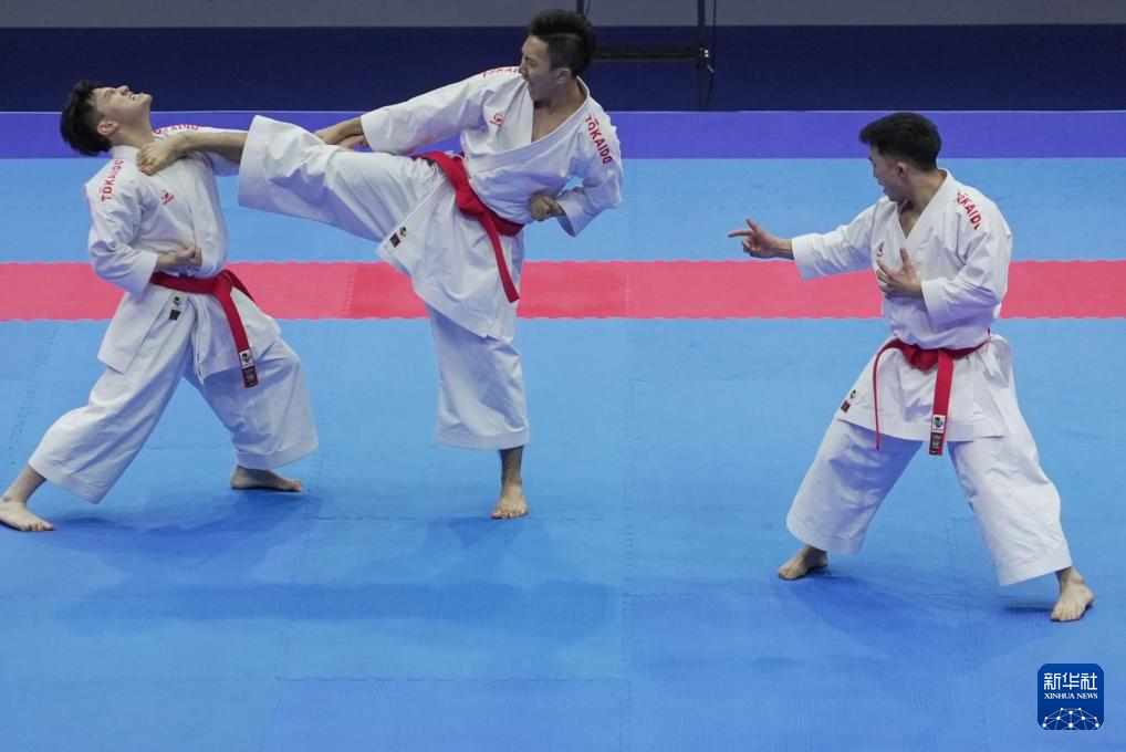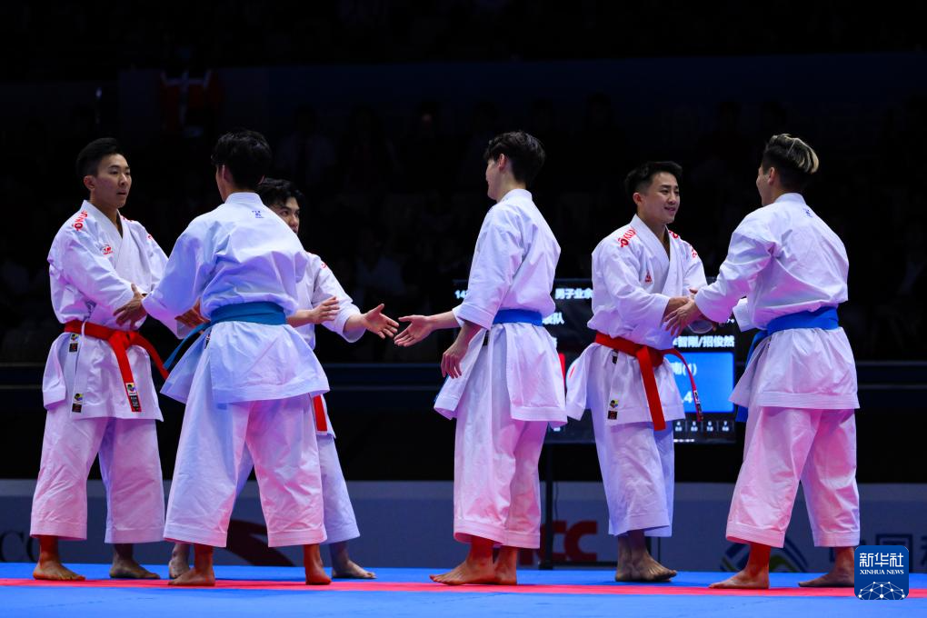 当日,在澳门举行的第十五届全国运动会空手道男子业余组团体型决赛中,澳门队战胜香港队,夺得冠军。