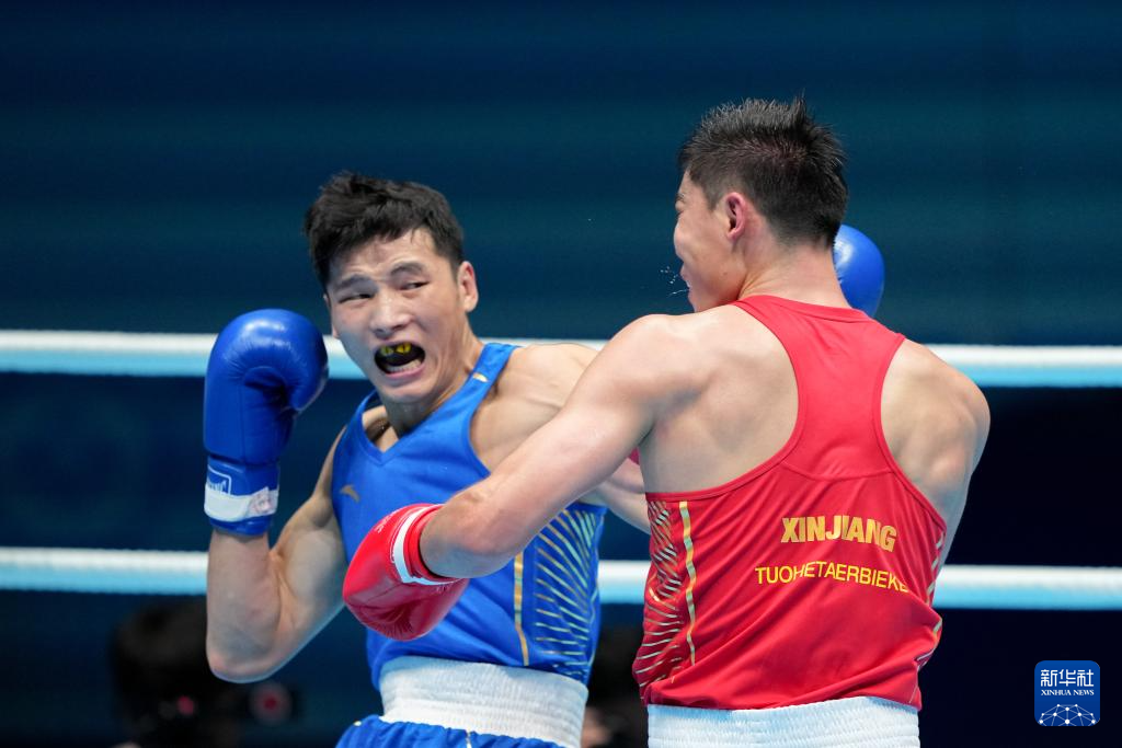 11月6日,王小保与托合塔尔别克·唐拉提汗(上)在比赛中。