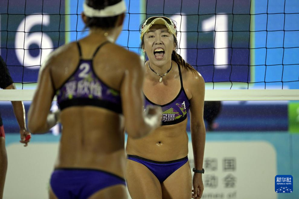 当日,在香港举行的第十五届全国运动会沙滩排球女子四分之一决赛中,新疆队组合王婧哲/夏欣怡2比0战胜山东队组合曹舒婷/董颉,晋级半决赛。
