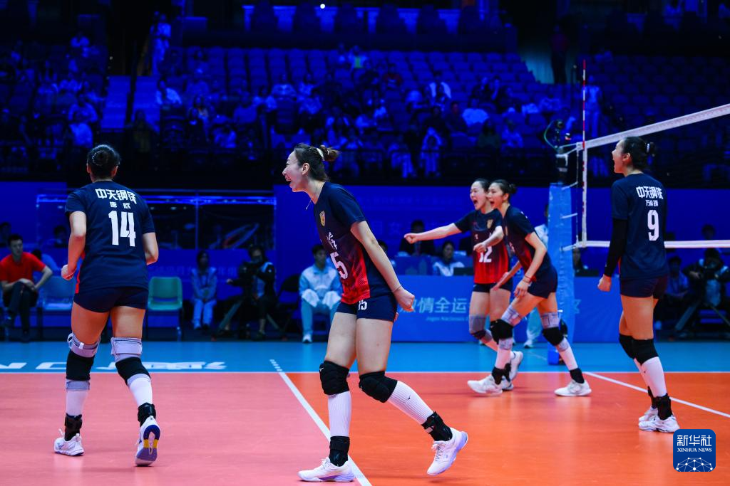 当日,在澳门举行的第十五届全国运动会排球女子成年组小组赛A组比赛中,江苏队3比0战胜云南队。