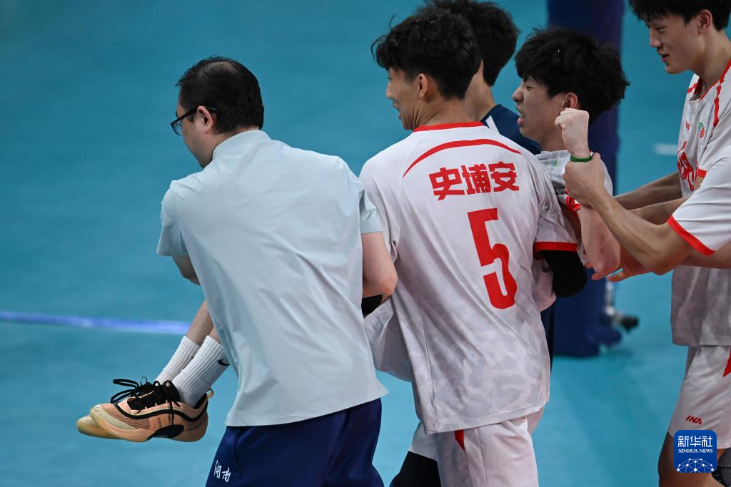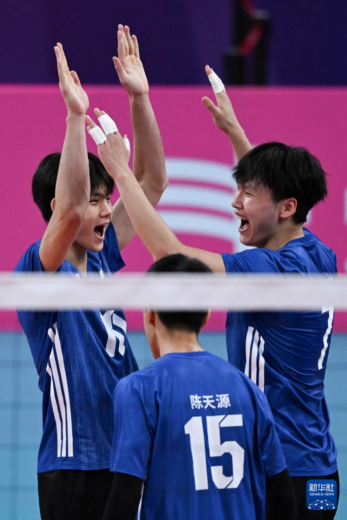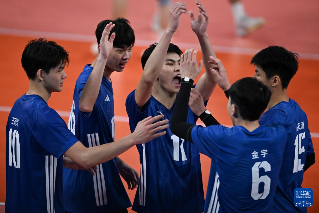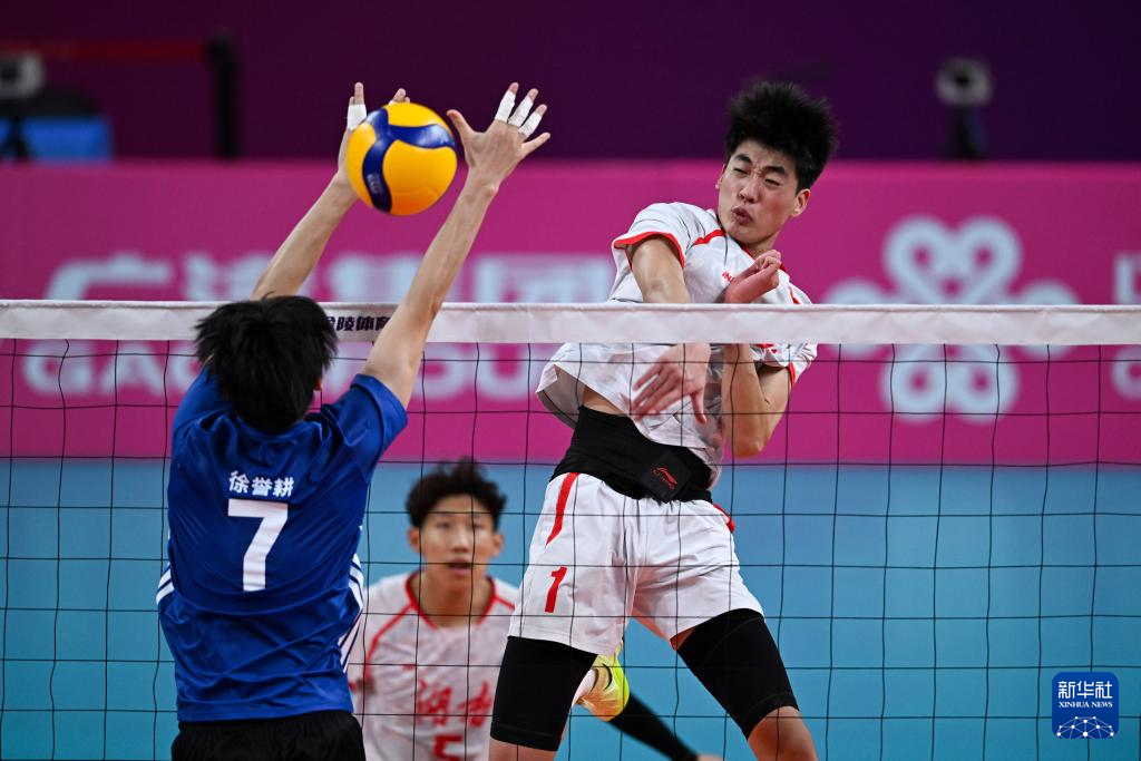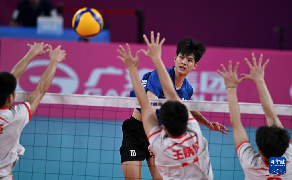 当日,在广州举行的第十五届全国运动会排球男子20岁以下组小组赛A组比赛中,广东队3比1战胜湖南队。