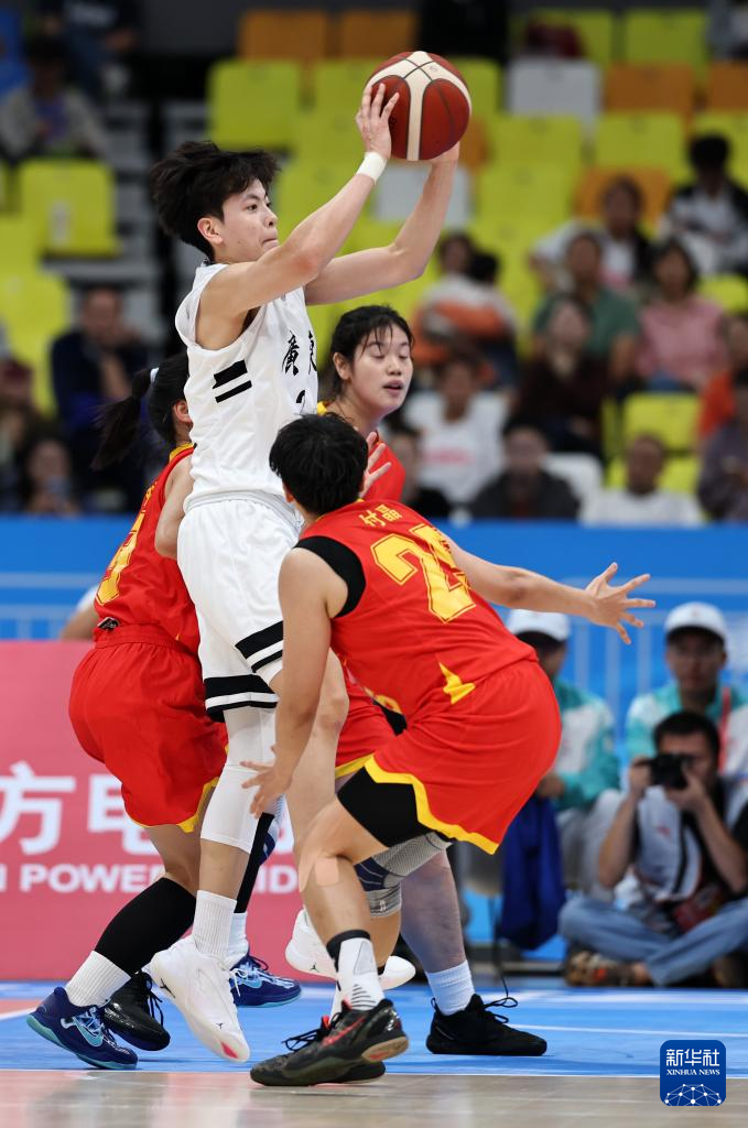 当日,在佛山举行的第十五届全国运动会篮球女子成年组小组赛比赛中,广东队105比57战胜湖北队。