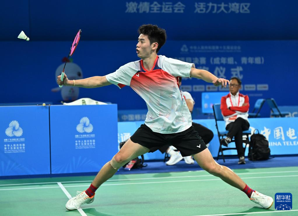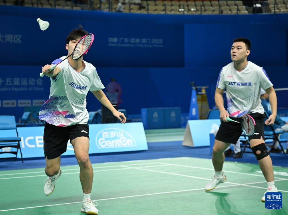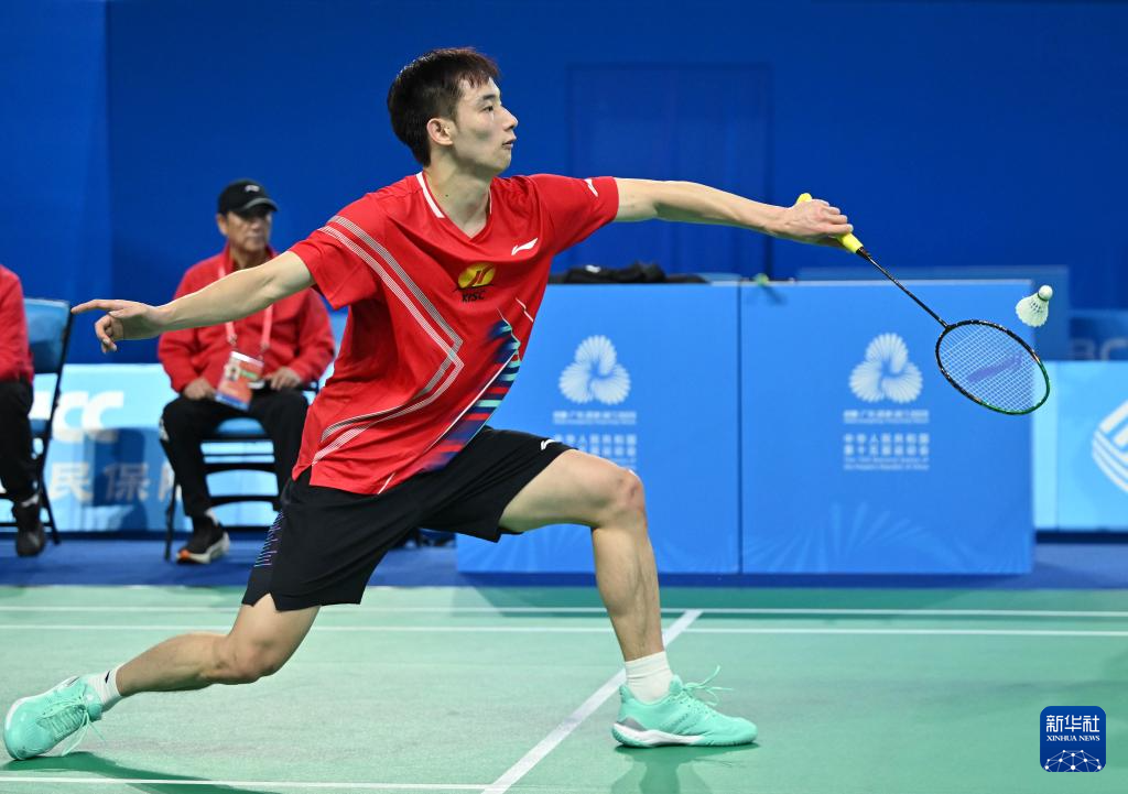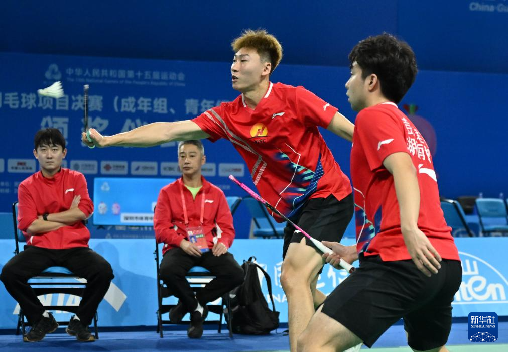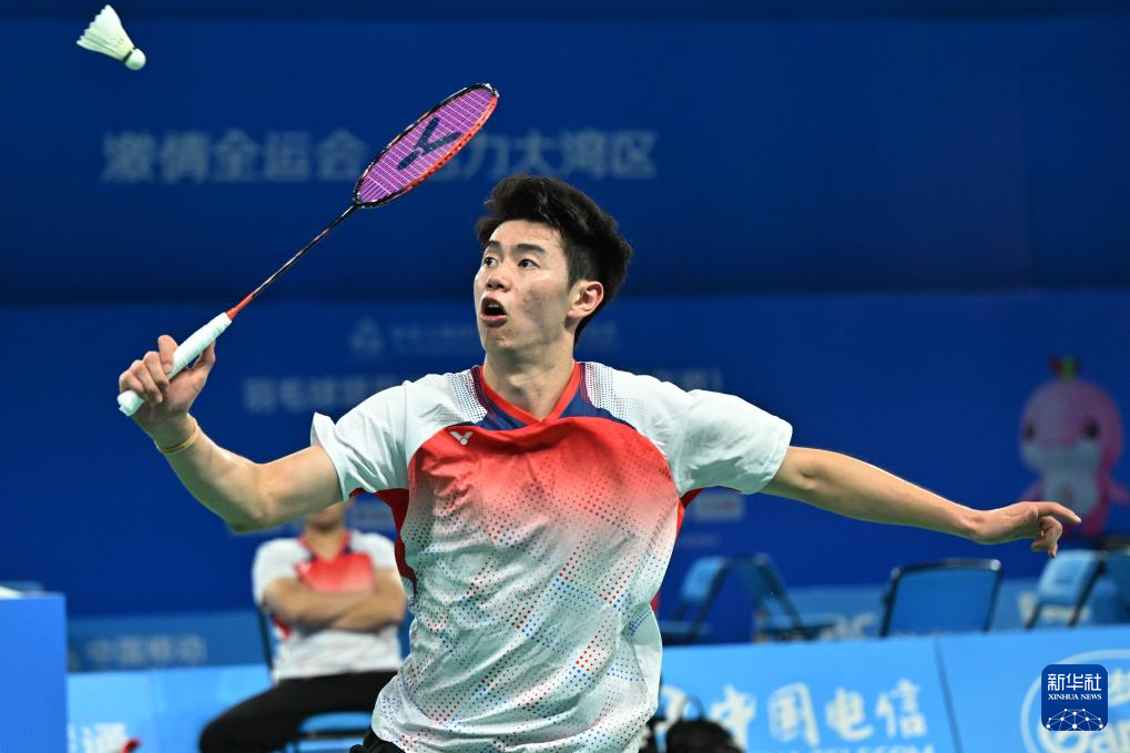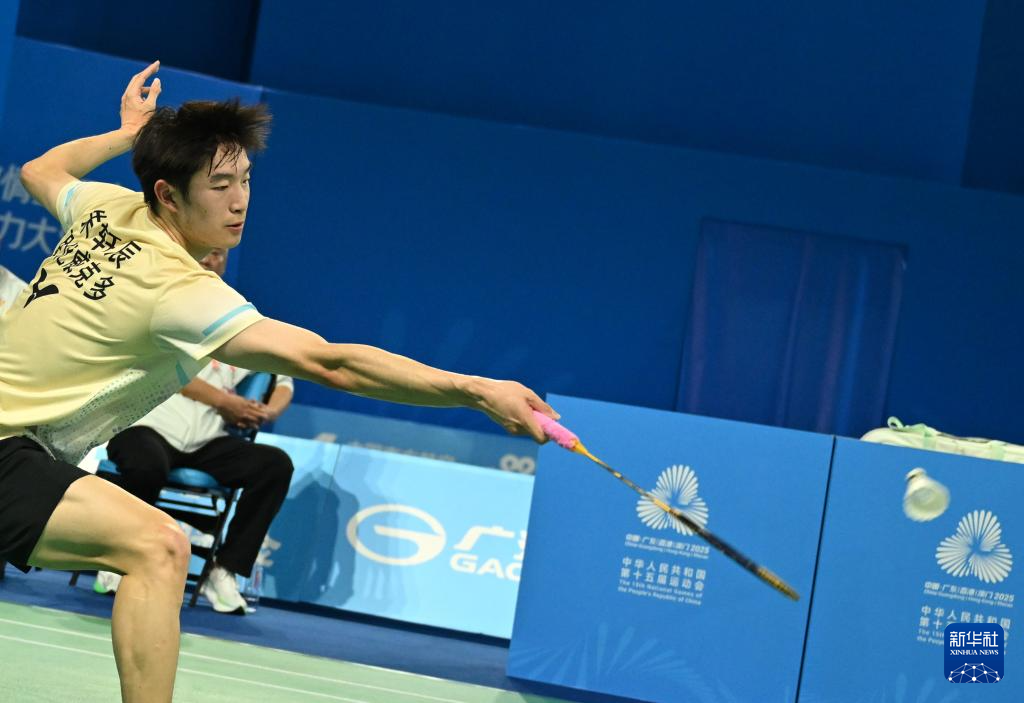 当日,第十五届全国运动会羽毛球男子团体小组赛在深圳举行。