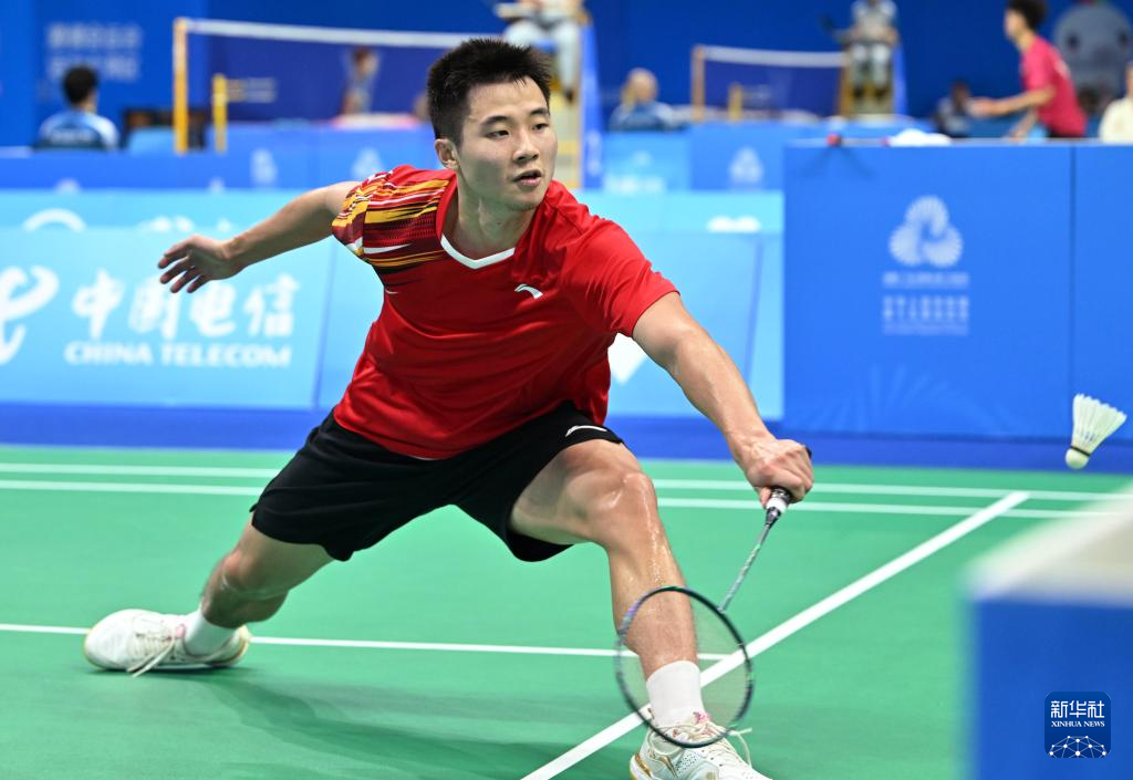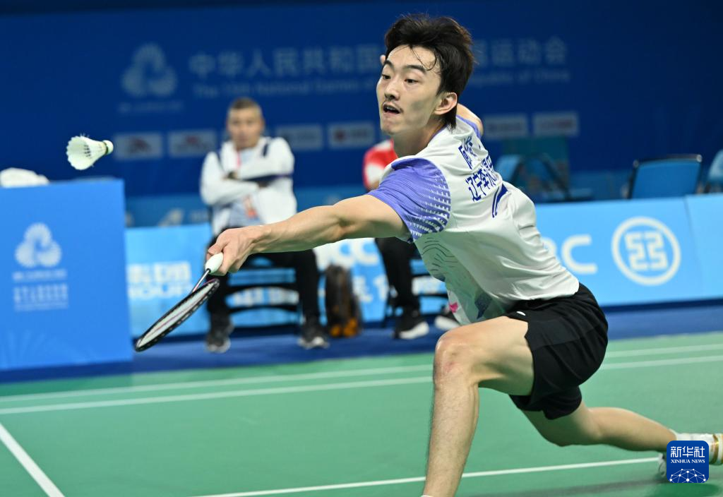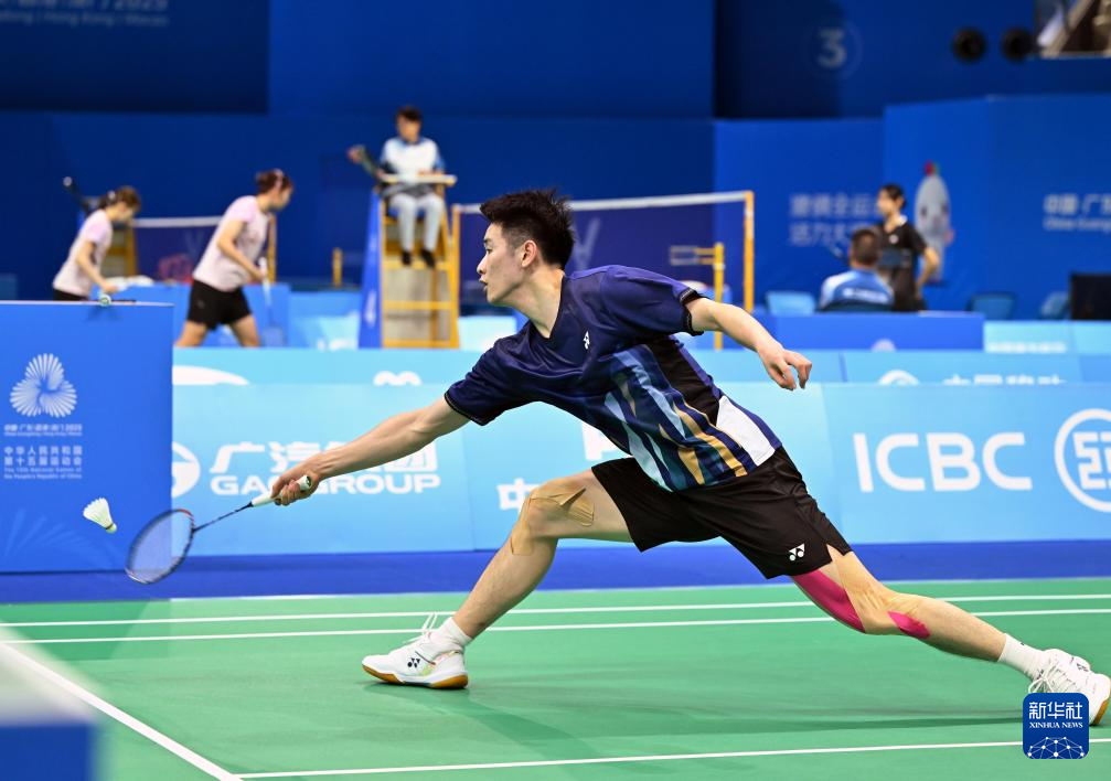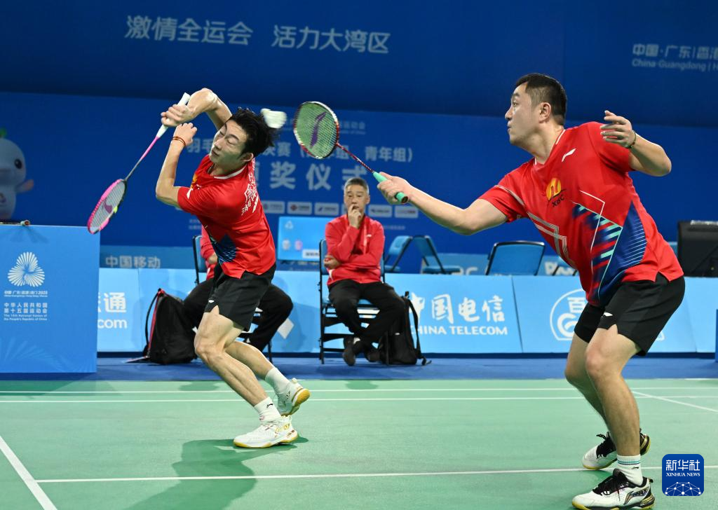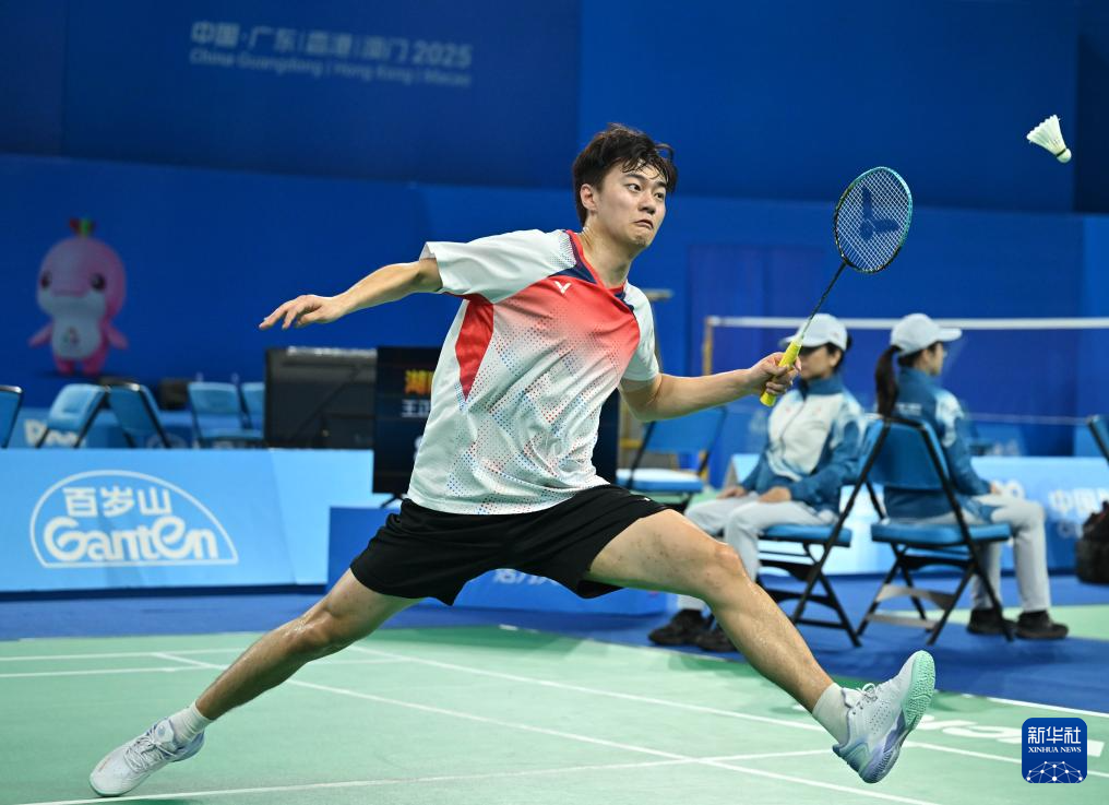 当日,第十五届全国运动会羽毛球男子团体小组赛在深圳举行。
