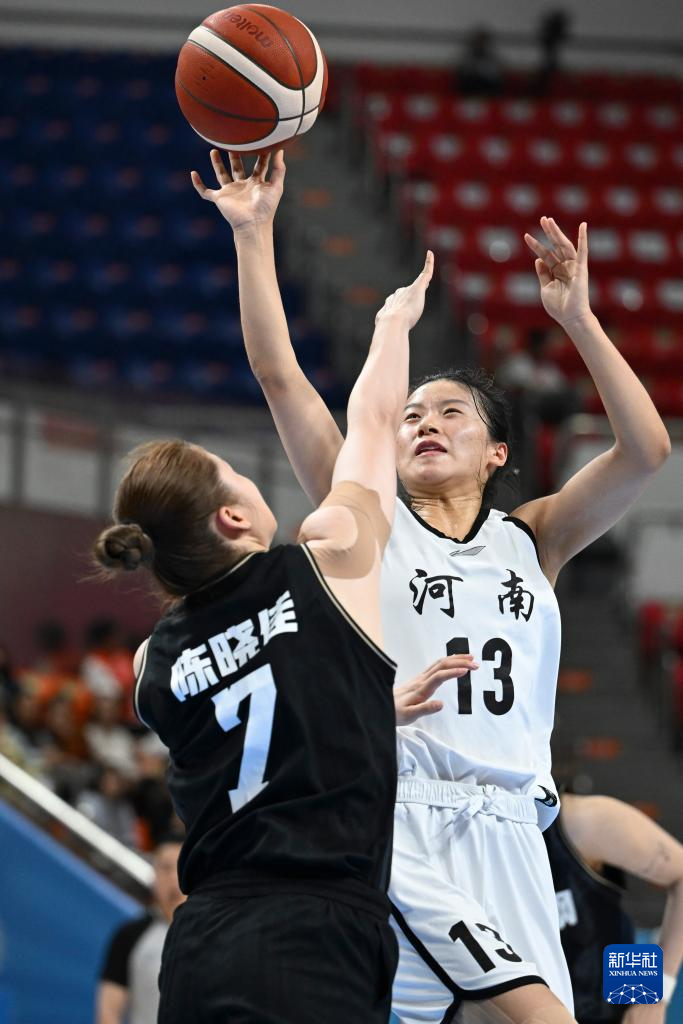 11月7日,河南队球员周凡荻(右)在比赛中突破。